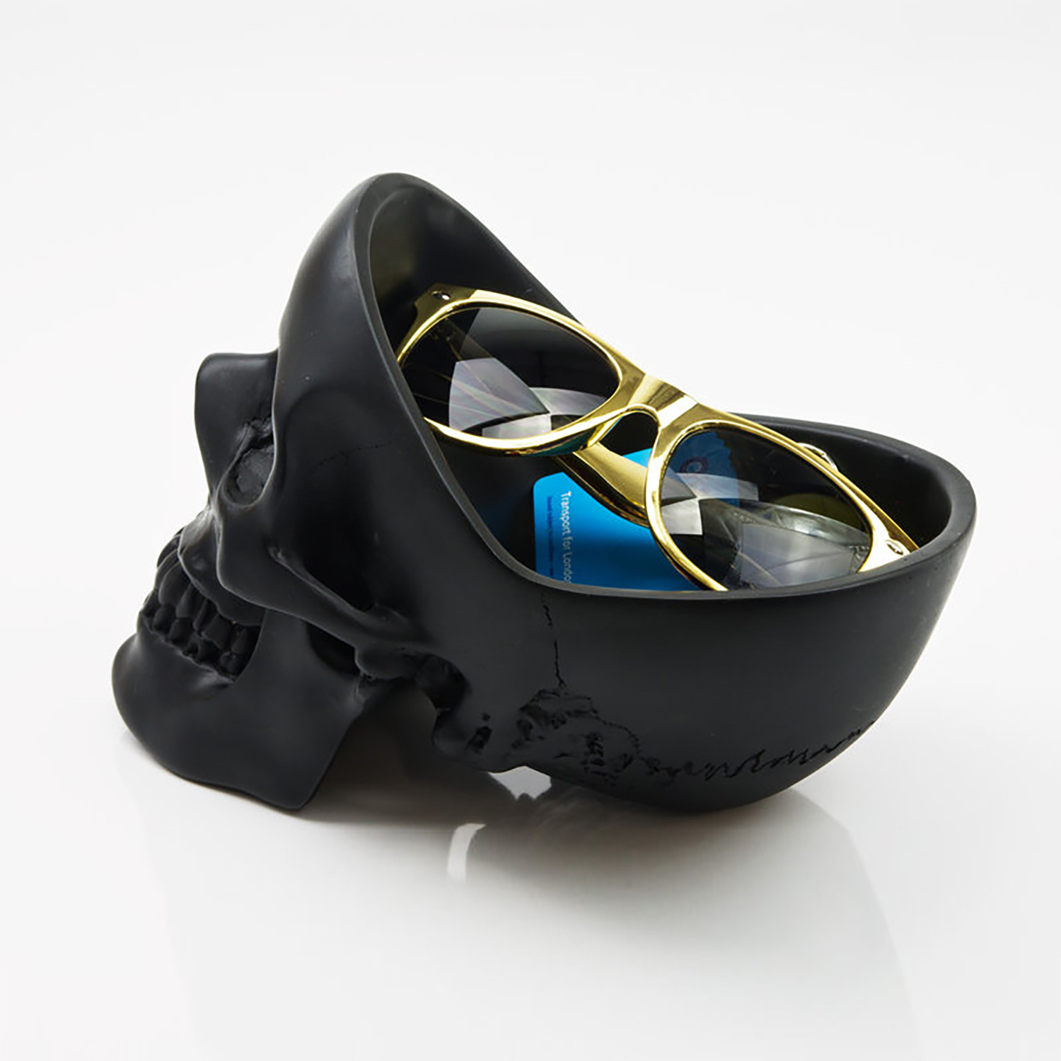 Keys, glasses, phone, watch, loose change, and the contents of your pockets... it can be difficult keeping all these things in mind. Get organized, keep your paraphernalia in a skull, freeing up space in yours. The key to good organization is to keep everything in one place, so stay tidy, fill your head with stuff before you lose it. Designed for holding the things you use every day.