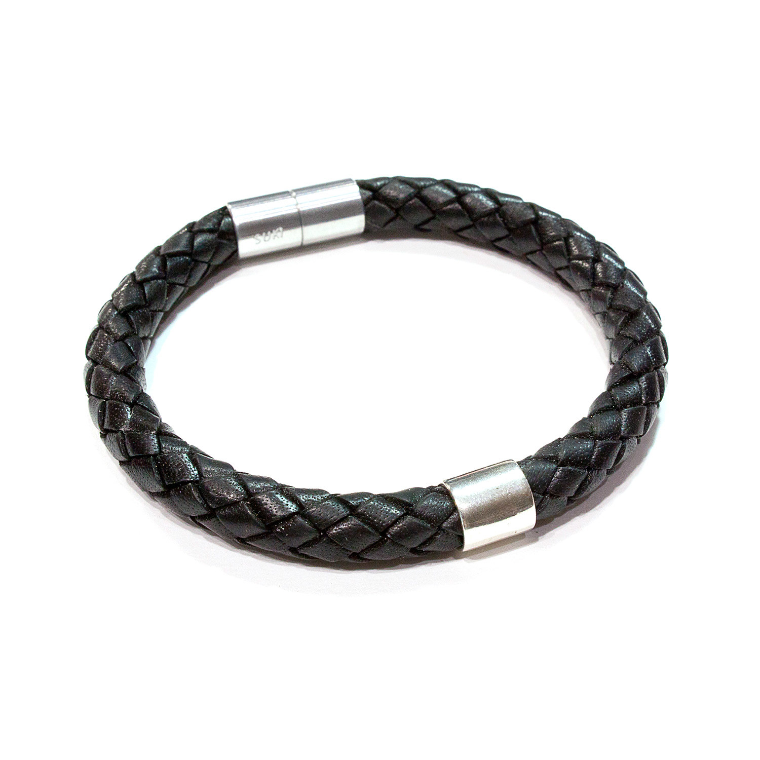 This complex Leather Bracelet adds a compelling texture to any outfit. The strong magnetic clasp is a statement-maker, and the leather is a luxe detail that sits on the wrist with sophistication. A perfect gift for both men and women, this year-round accessory can be worn everyday, in any weather, no matter what you're wearing.