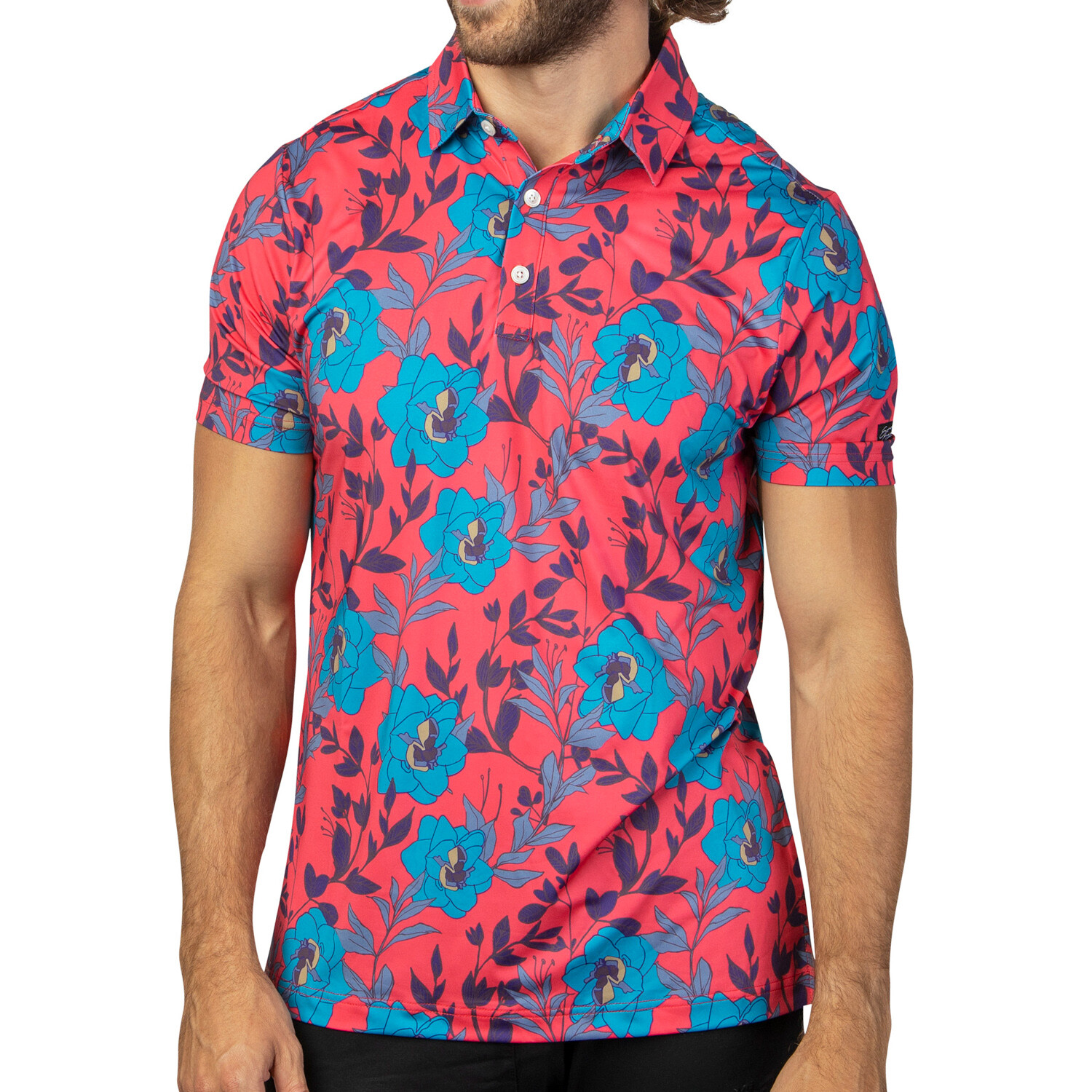 Style meets performance with premium technical fabric. These bright, bold Performance Polos were designed with 4-way stretch, UPF 40 sun protection, moisture wicking technology and a breathable poly spandex blend that is wrinkle resistant. And of course, nothing beats a print that can be seen 3 holes away.