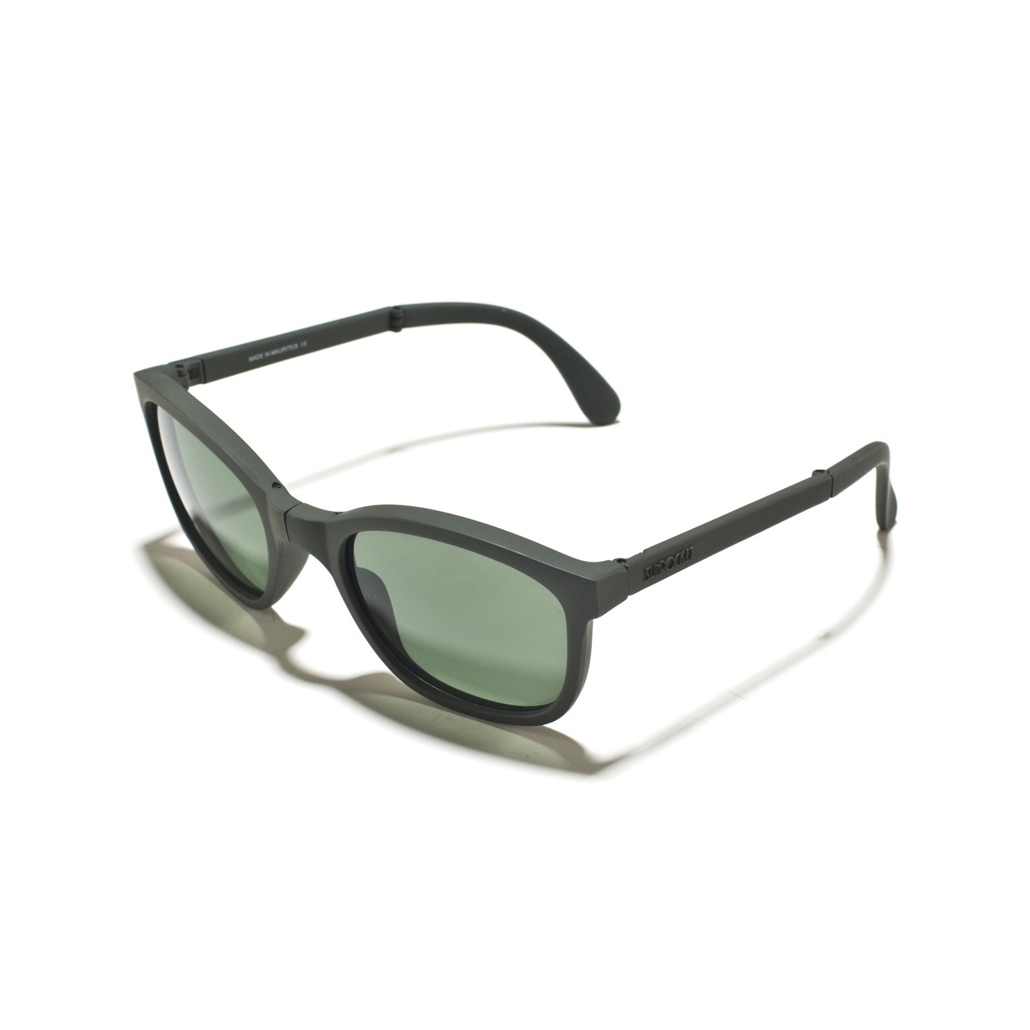 The Dark Seaweed Tonga is named after the kingdom of Tonga, an island group scattered over the Southern Pacific Ocean. These shades are designed to incorporate Sunpocket's key features; unbreakable polycarbonate lenses that give 100% UV-protection and a lightweight, foldable grilamid plastic frame, with slightly leaner and rounded rims giving them the classic square eye frame.