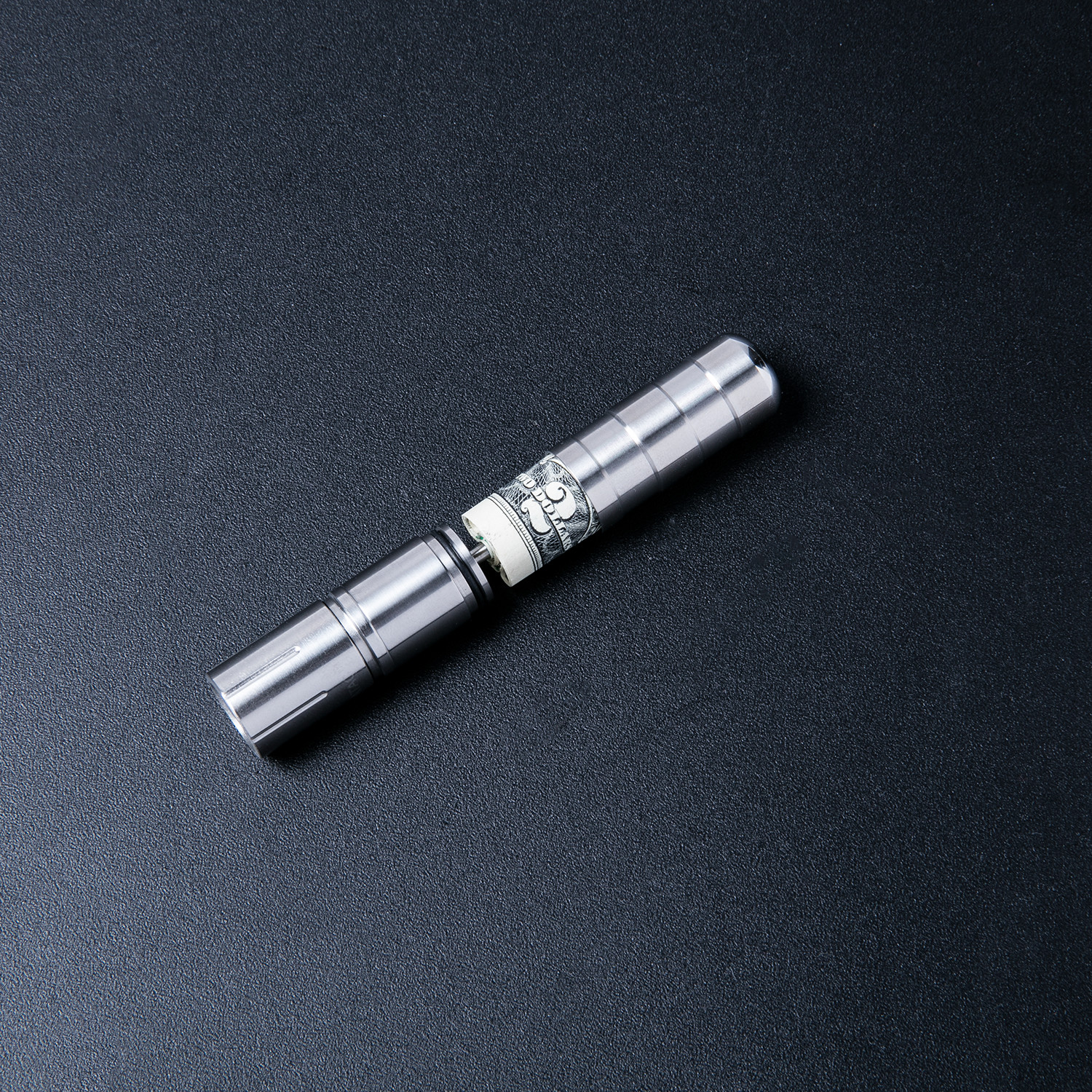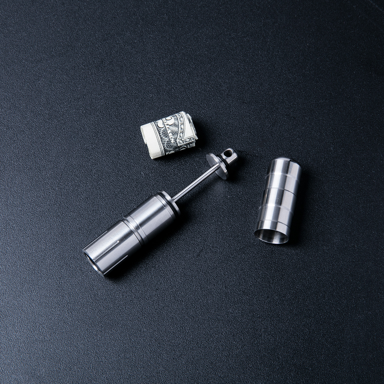 Keep emergency cash on you at all times with the Mini Cash Can. Machined from a solid metal bar, it's sleek, sturdy, totally waterproof, and small enough to hang unobtrusively on your keys, or toss right into your bag. No one should ever be without cash on hand, and this good-looking little companion will give you one less thing to worry about.
