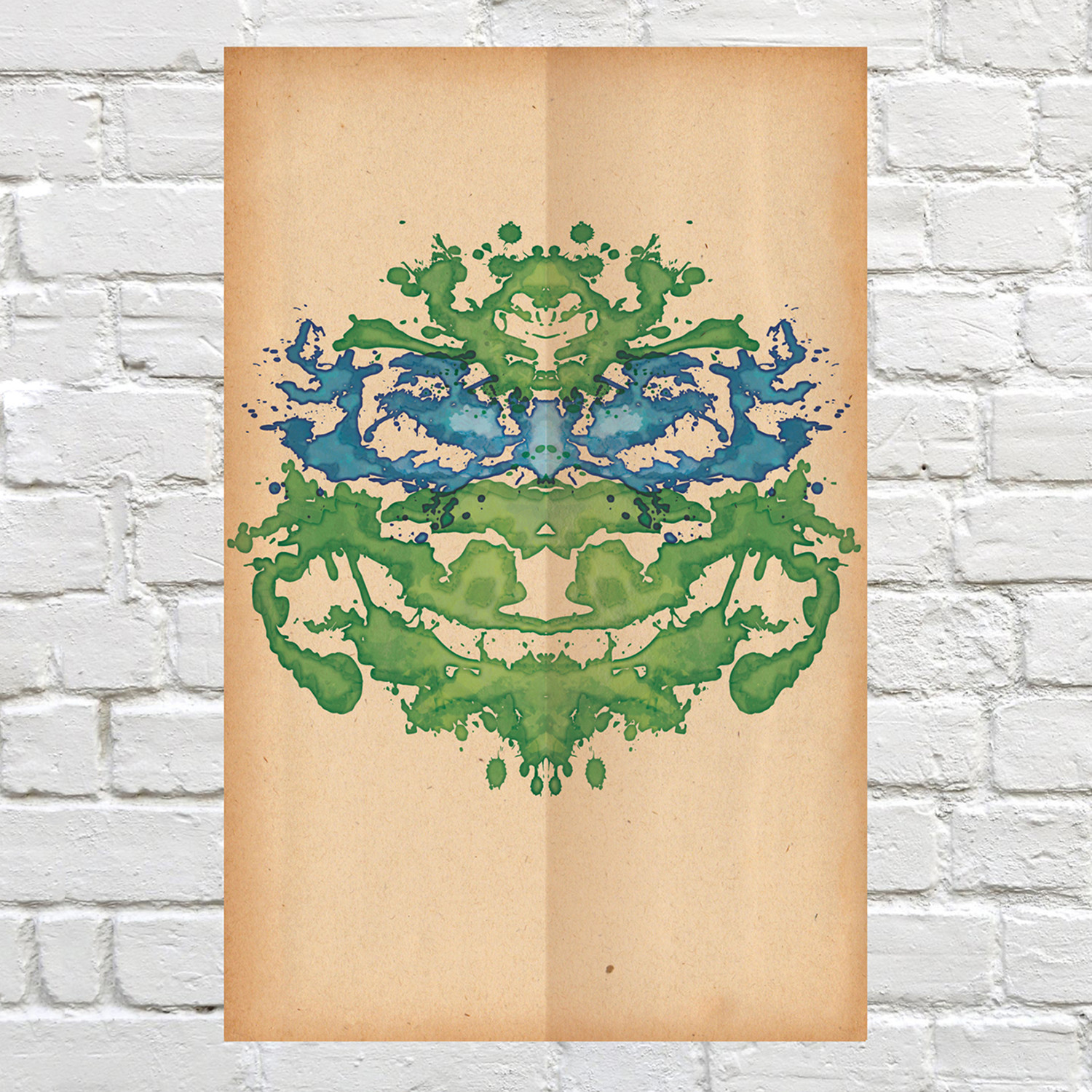 Inspired by the Rorschach test, this print was designed with Teenage Mutant Ninja Turtles in mind; but like the Rorschach, this print is up to interpretation. Traditionally, Rorschach tests were made by stamping ink blots and folding of the paper to create a mirrored effect, and this art piece pays homage to that process in every detail. Bold and bright, it will look great in any space.