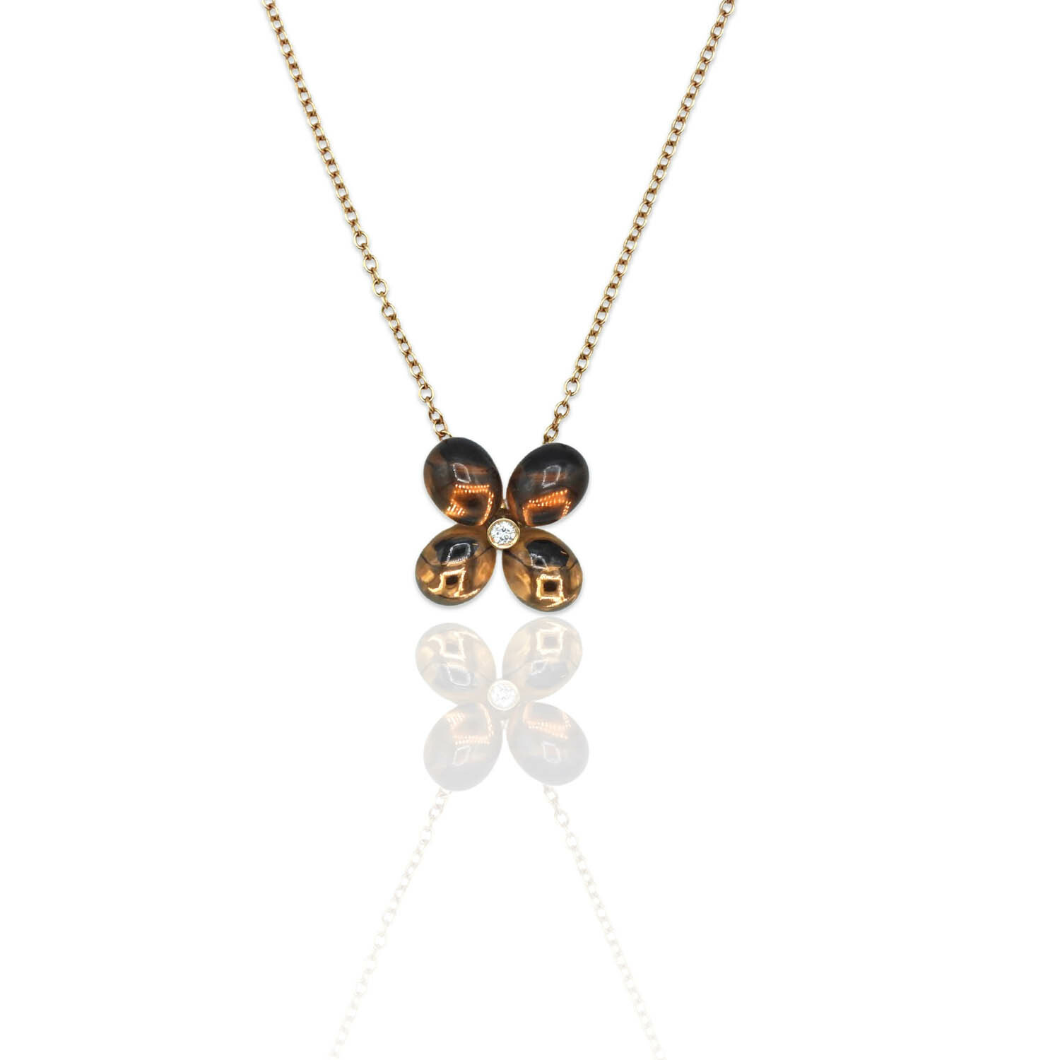 Superoro // 18K Rose Gold Diamond + Smoky Quartz Necklace // 17" // New