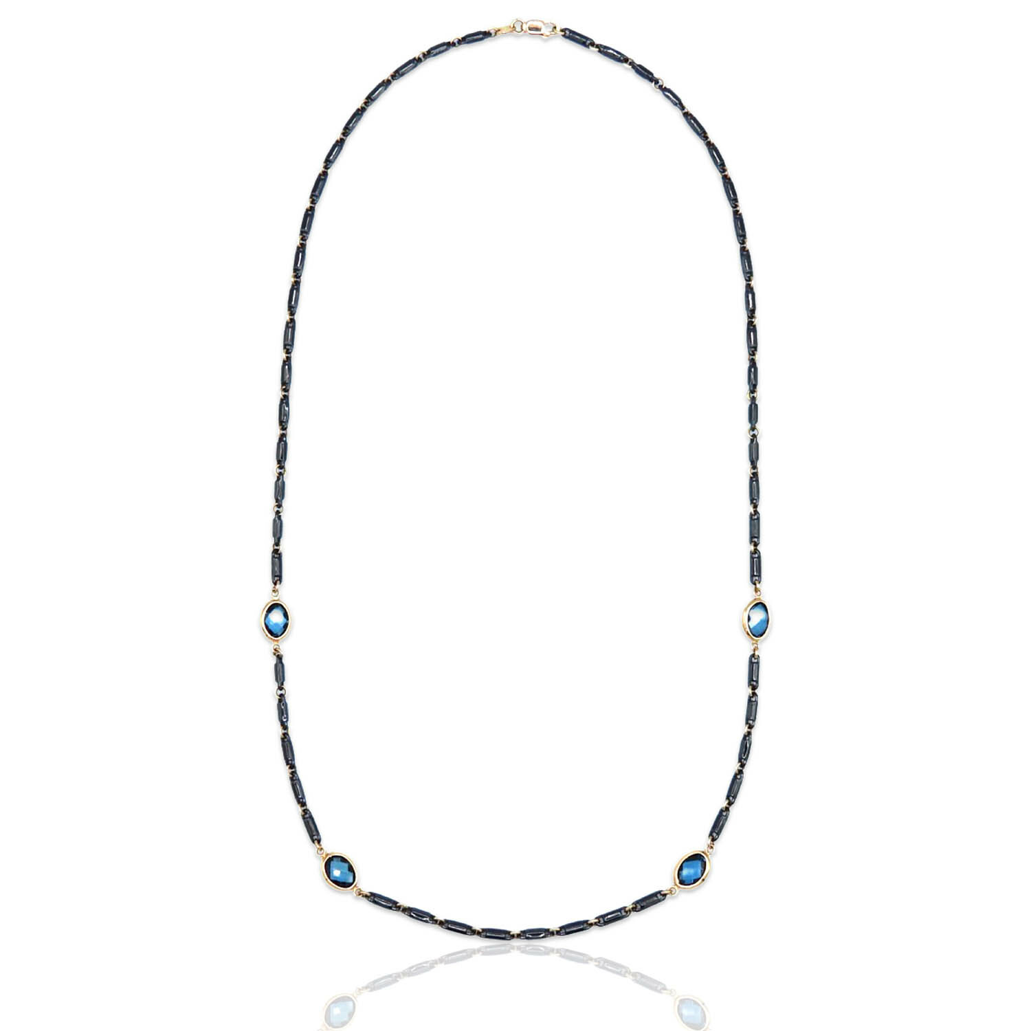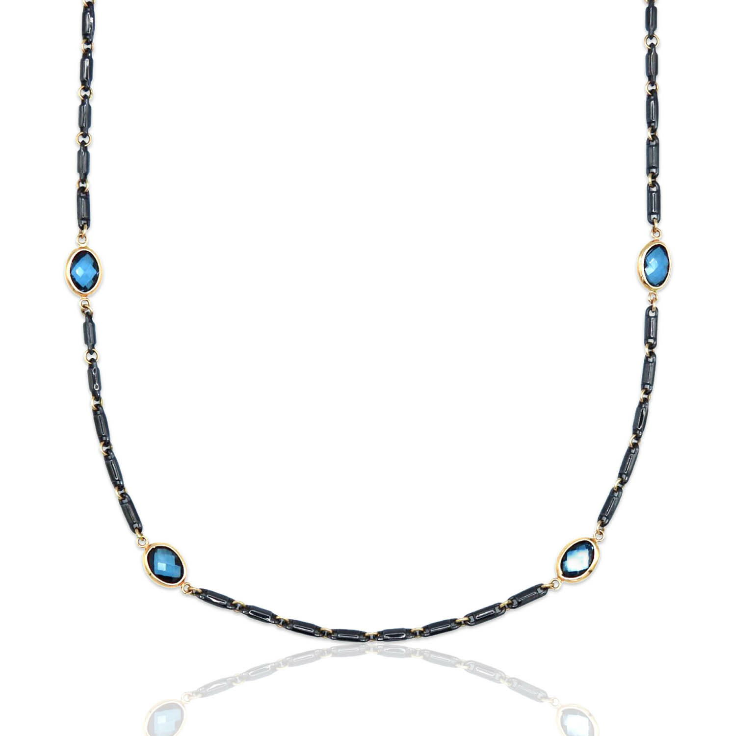 Superoro // 18K Rose Gold Topaz + Black Ceramic Necklace // 20" // New