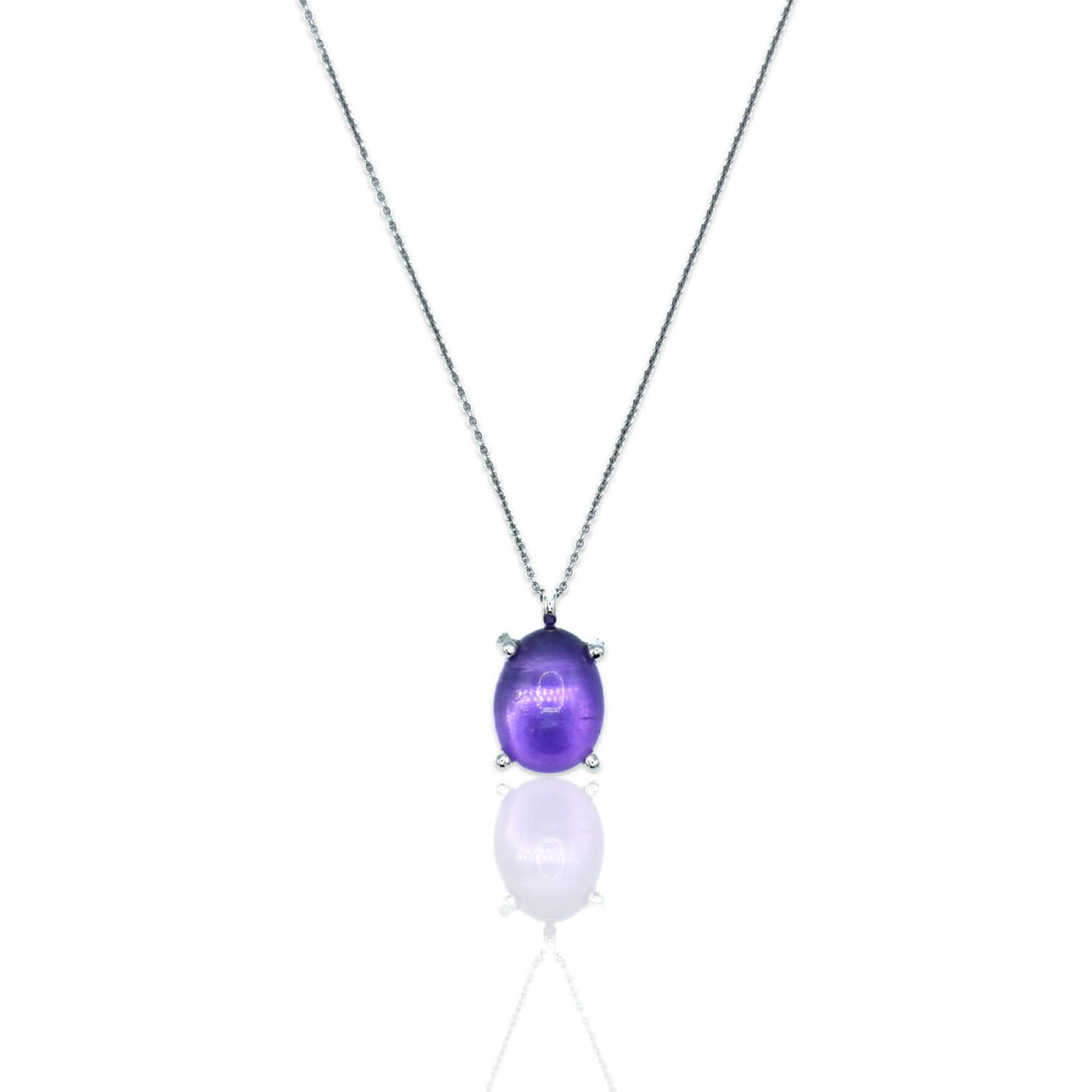 Superoro // 18K White Gold Diamond + Amethyst Necklace // 17" // New