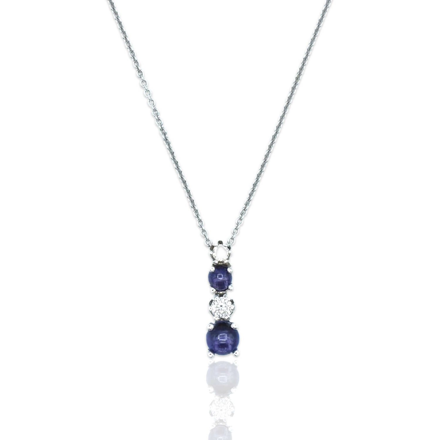 Superoro // 18K White Gold Diamond + Iolite Necklace // 16.5" // New