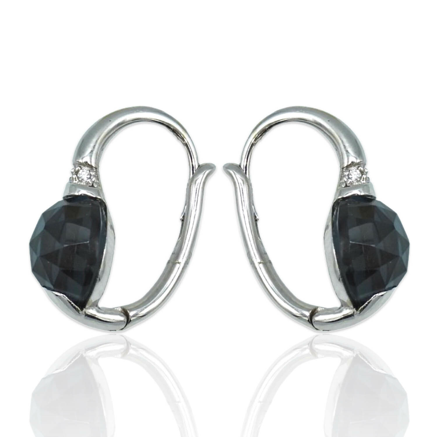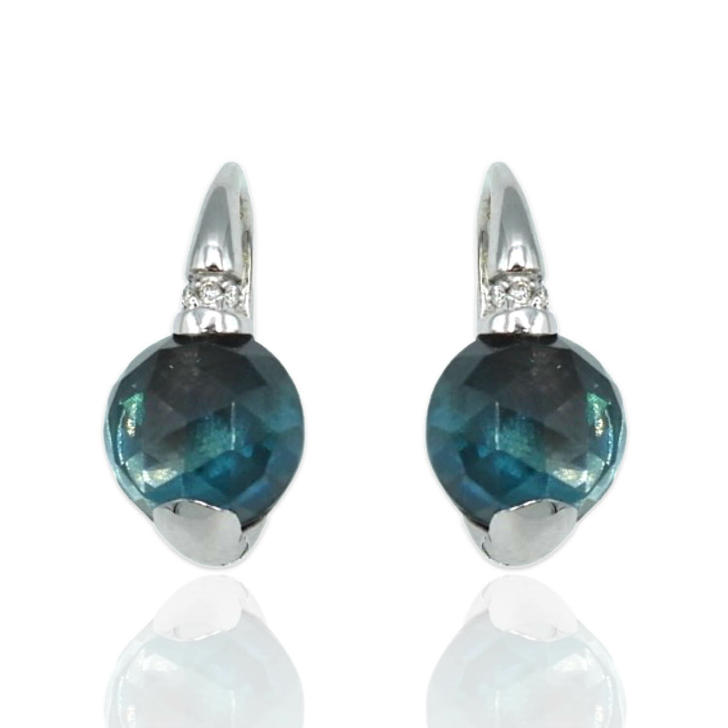Superoro // 18K White Gold Diamond + Topaz Earrings // New