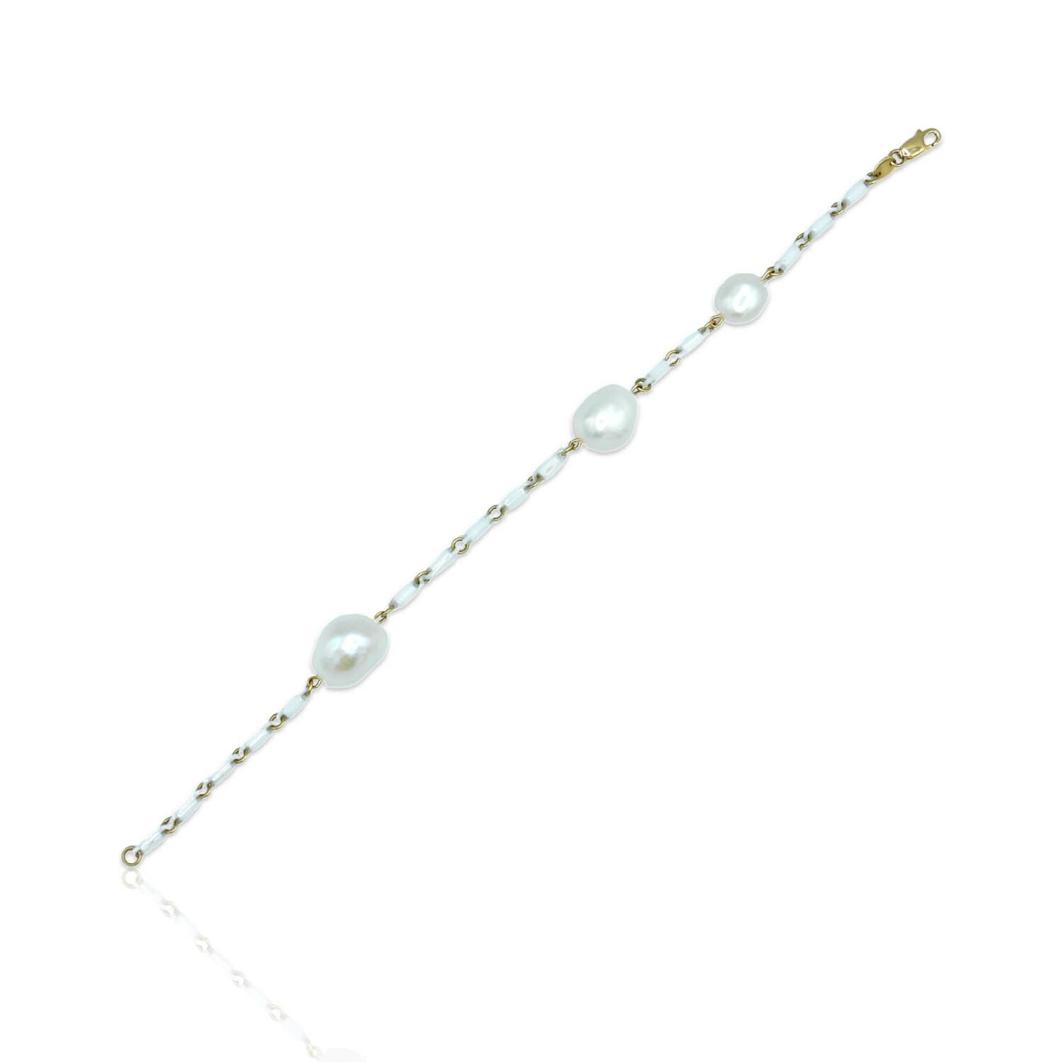 Superoro // 18K Yellow Gold Ceramic + Pearl Bracelet // 7.5" // New