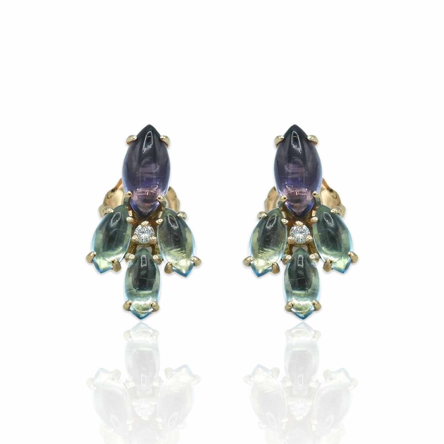 Superoro // 18K Rose Gold Diamond + Iolite + Topaz Earrings // New