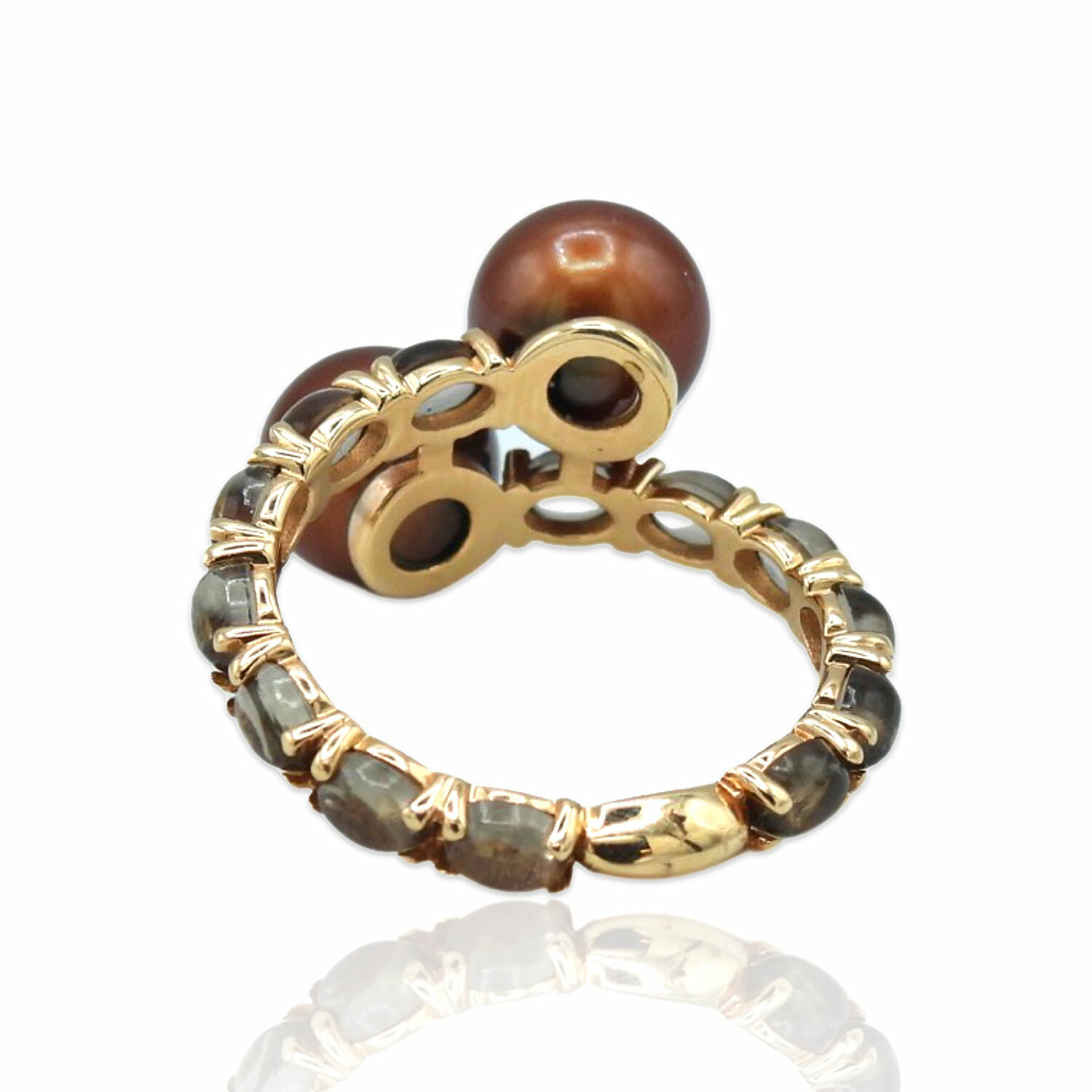 Superoro // 18K Rose Gold Pearl + Smoky Quartz Ring // Ring Size: 7.25 // New