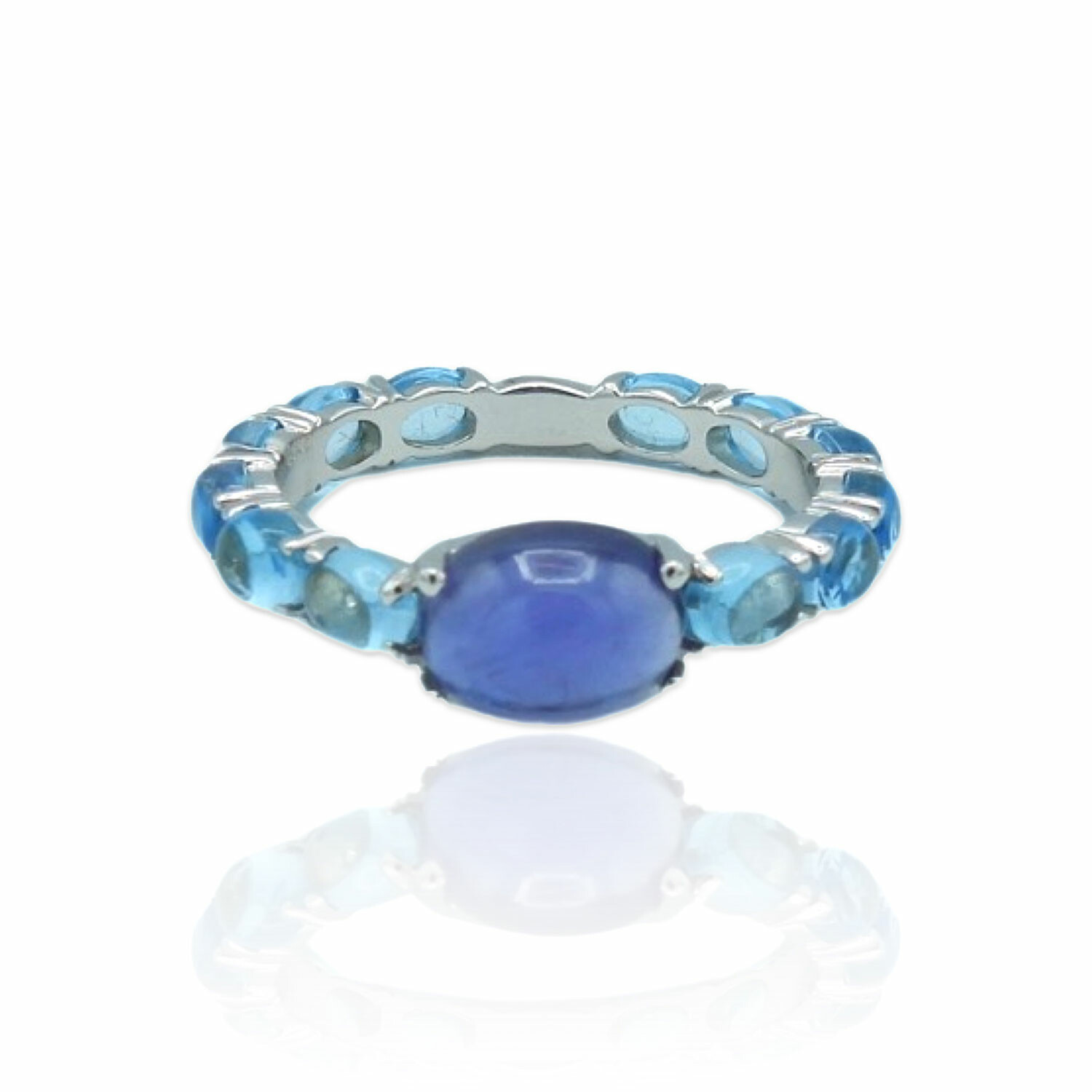 Superoro // 18K White Gold Iolite + Topaz Ring // Ring Size: 6.5 // New