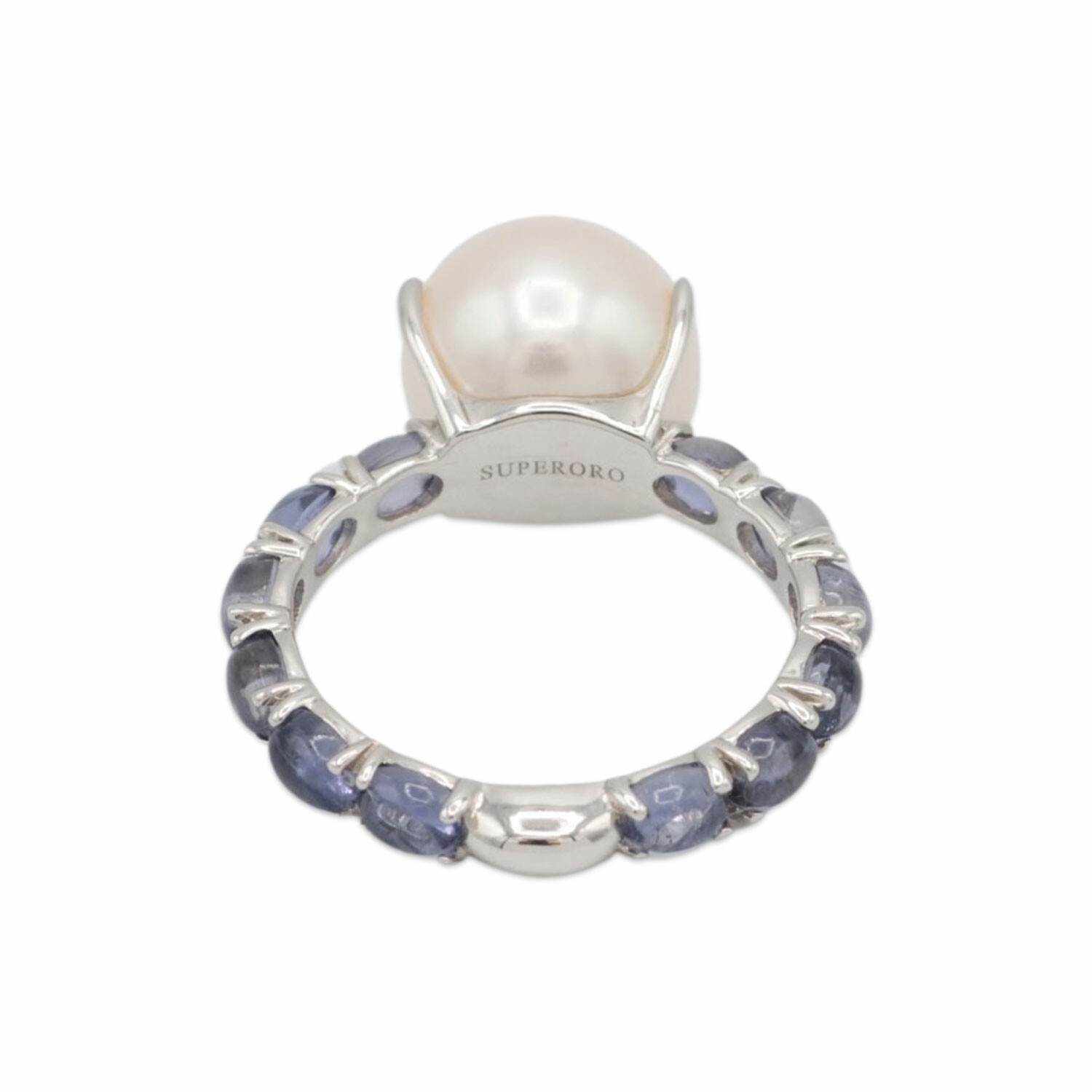 Superoro // 18K White Gold Pearl + Iolite Ring // Ring Size: 6.5 // New