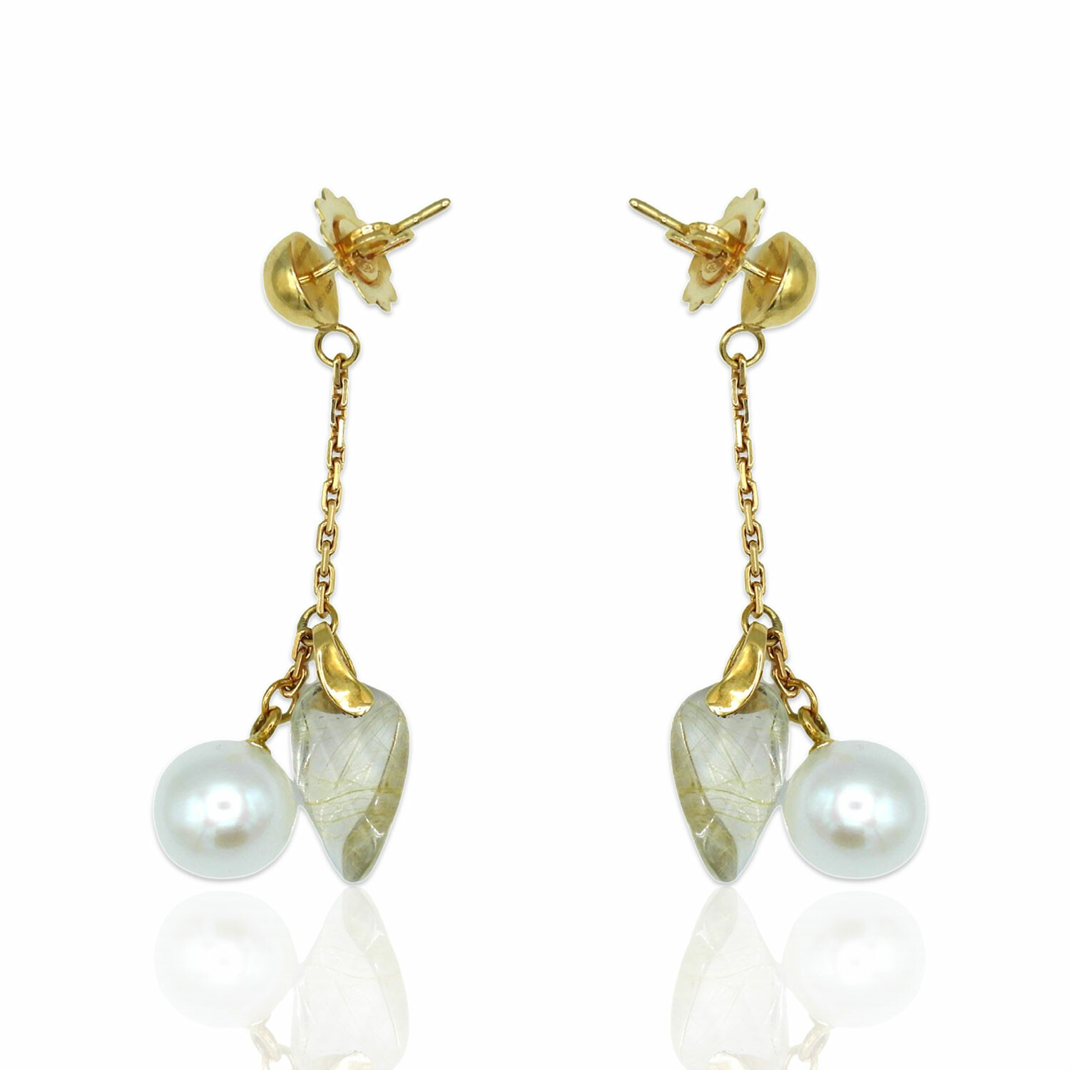 Superoro // 18K Yellow Gold Pearl + Quartz Earrings // New