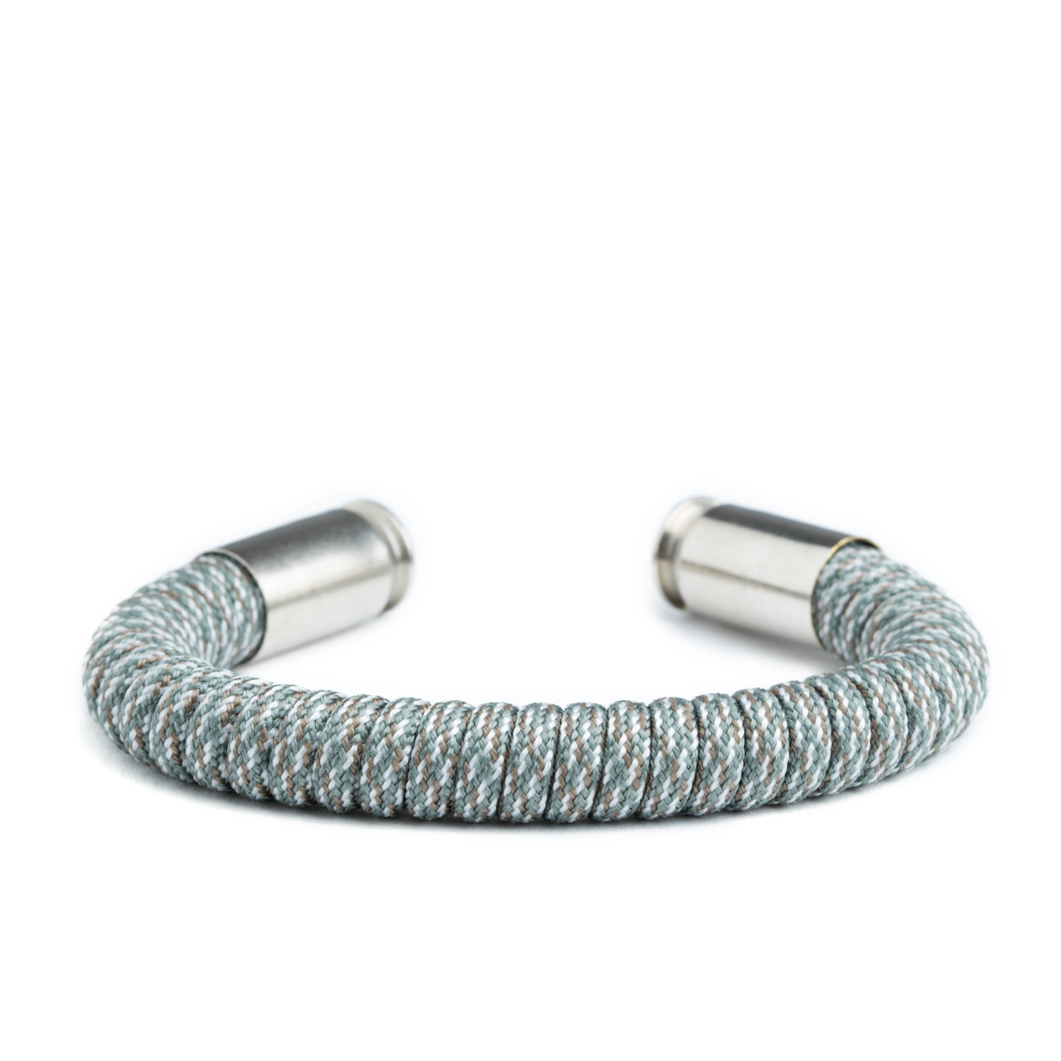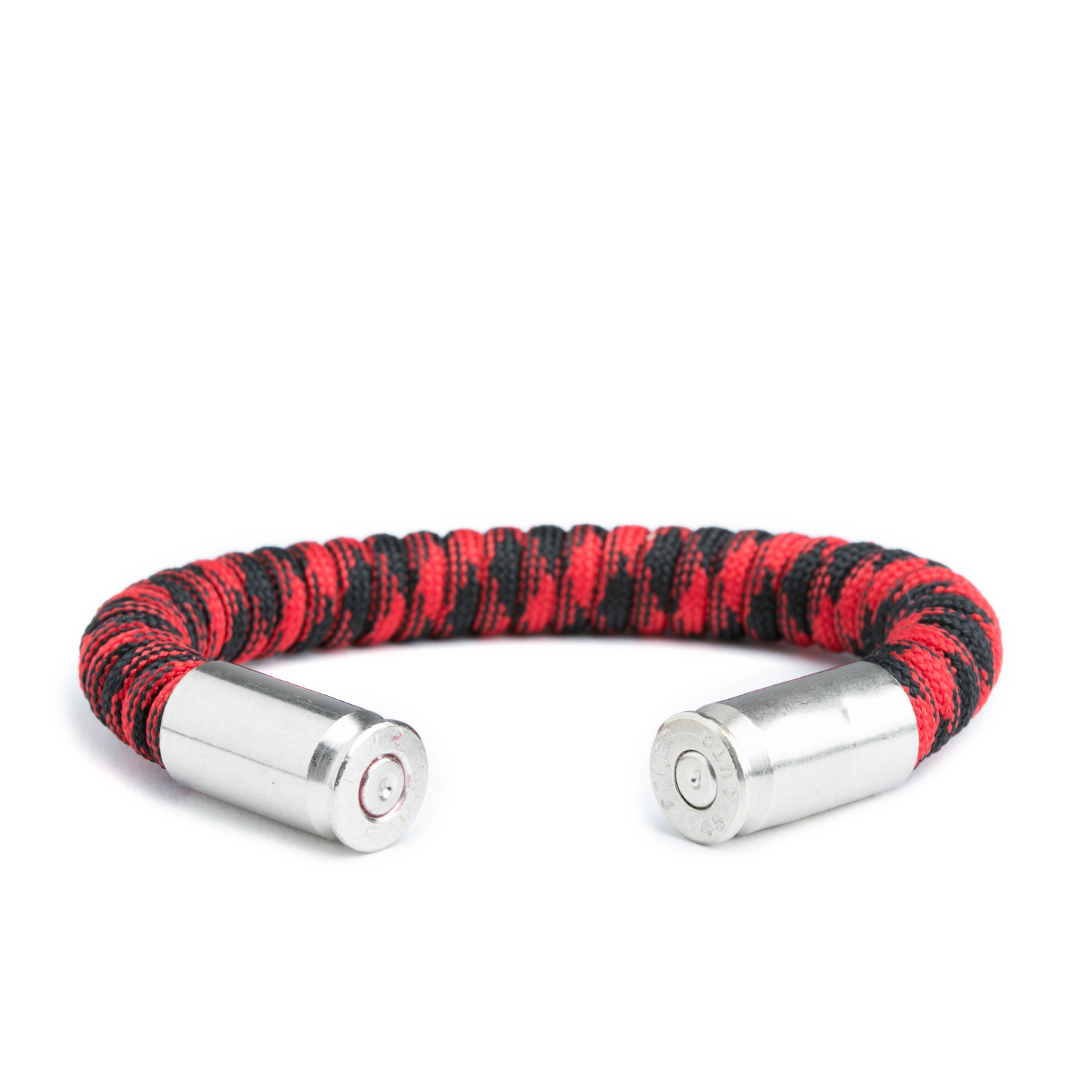 The Survival Straps® Ranger Master // .45 Caliber Bullet Bracelet is a hand-made paracord-wrapped bracelet paired with actual spent, recycled, cleaned and tumbled nickel plated bullet shell casings. It custom forms to your wrist so you can get the perfect fit. It's perfect for anyone who loves America, weaponry and the shooting sports, great for men who love bullet style jewelry. This original bullet bracelet is tough, unique and just plain bad ass!