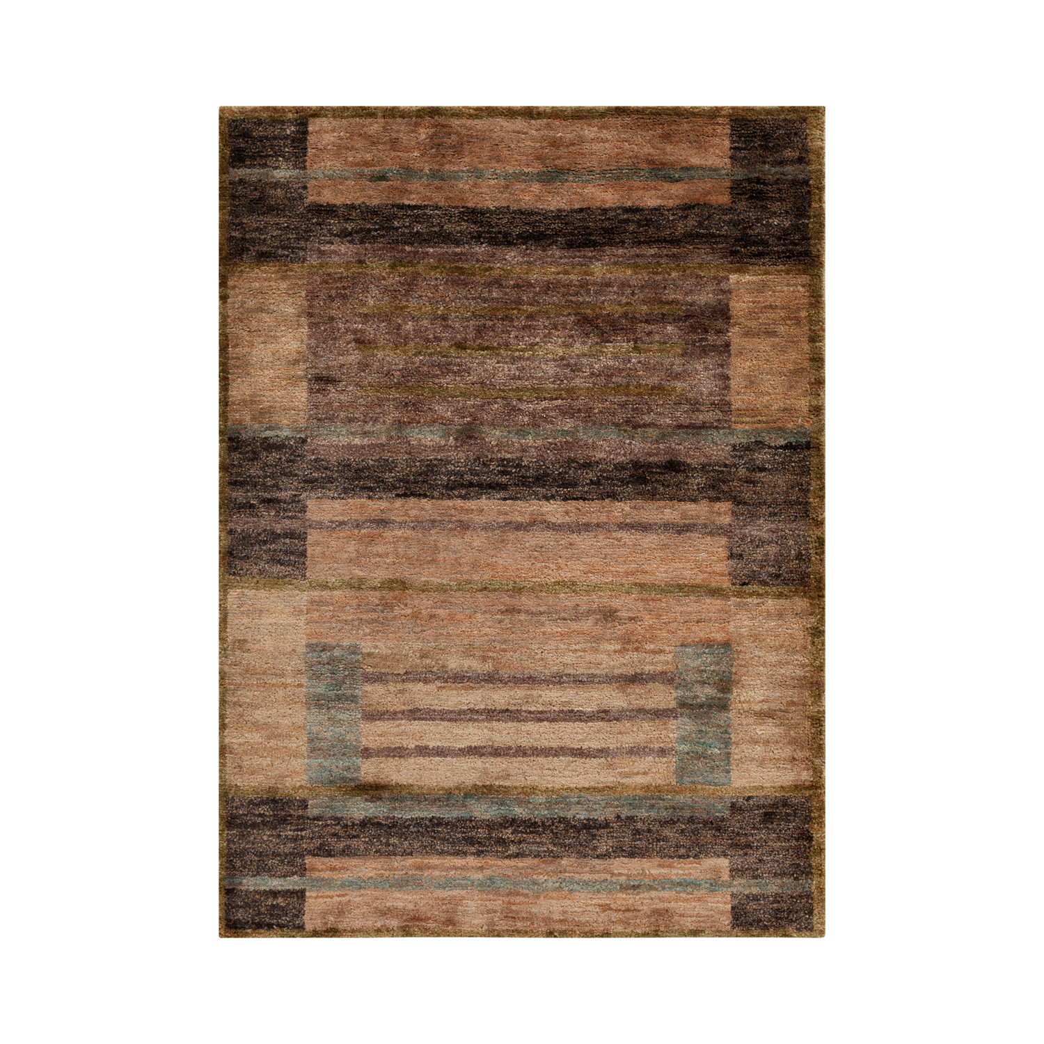 The Scarborough rug combines natural hand knotted hemp and a warm color palette to create a rug that is at once both rustic and modern. Its variegated block pattern draws on popular contemporary design while its warm hemp creates a rugged look.