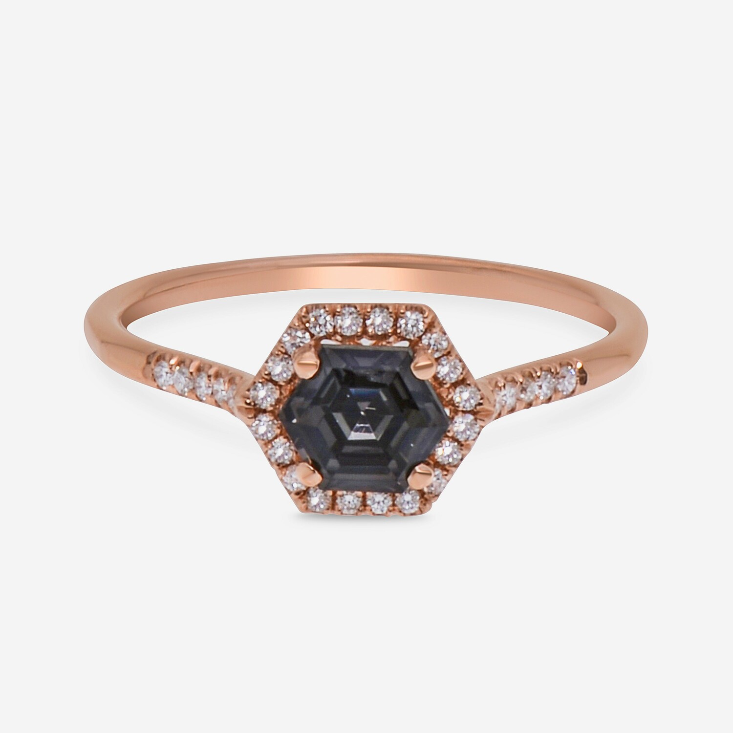 14K Rose Gold Diamond + Black Night Quartz Ring // Ring Size: 6.25 // New