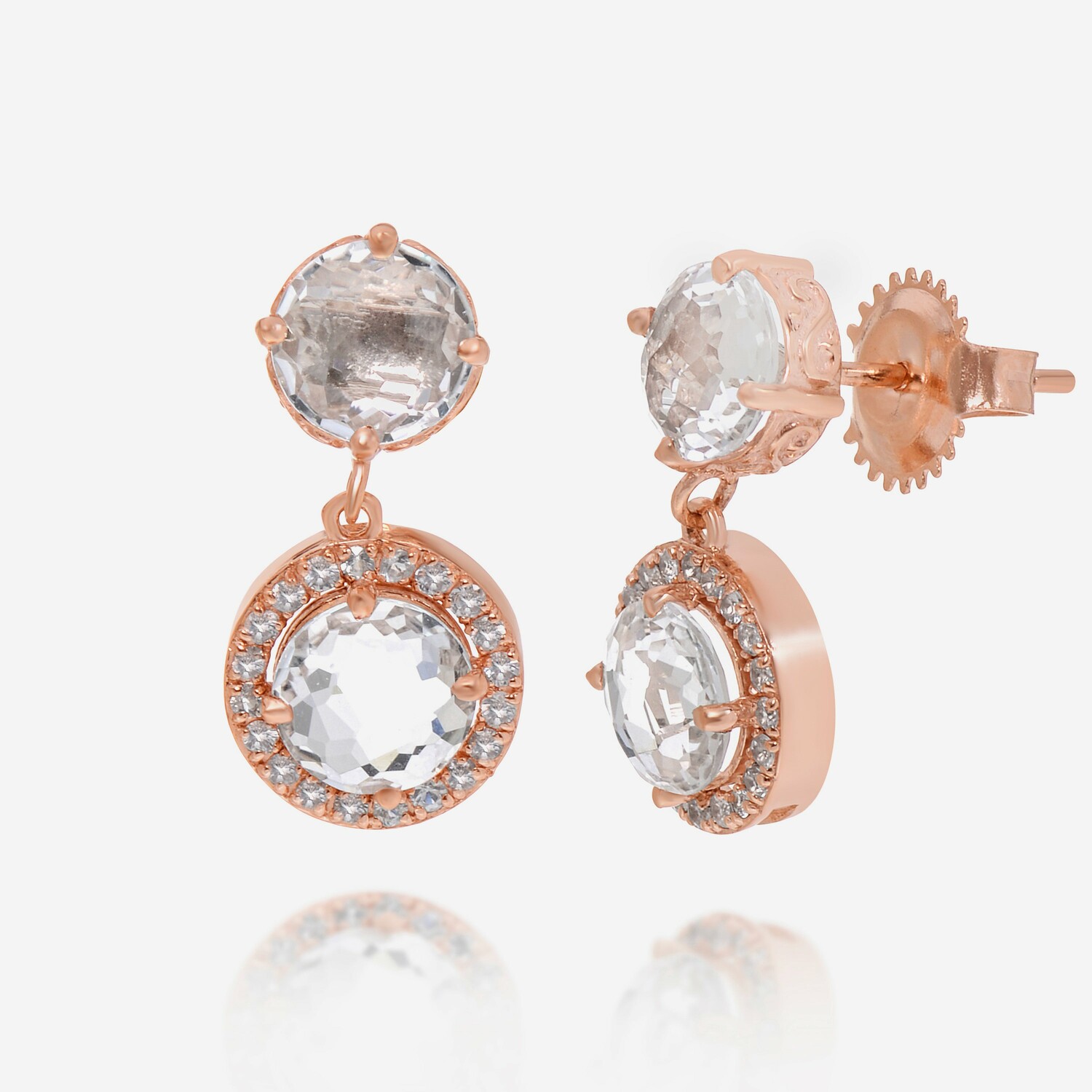 14K Rose Gold + White Sapphire Drop Earrings // New