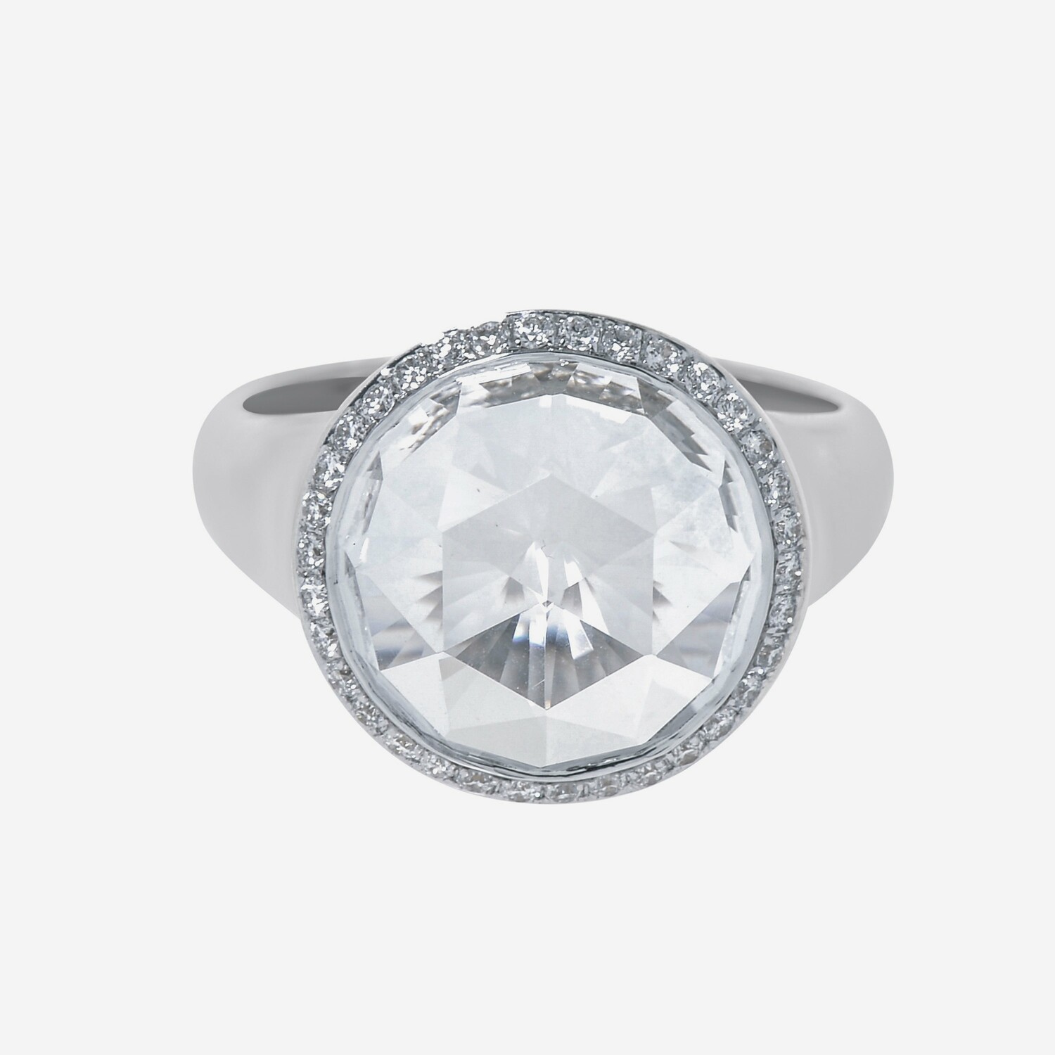 18K White Gold White Topaz + Diamond Ring // Ring Size: 6.5 // New