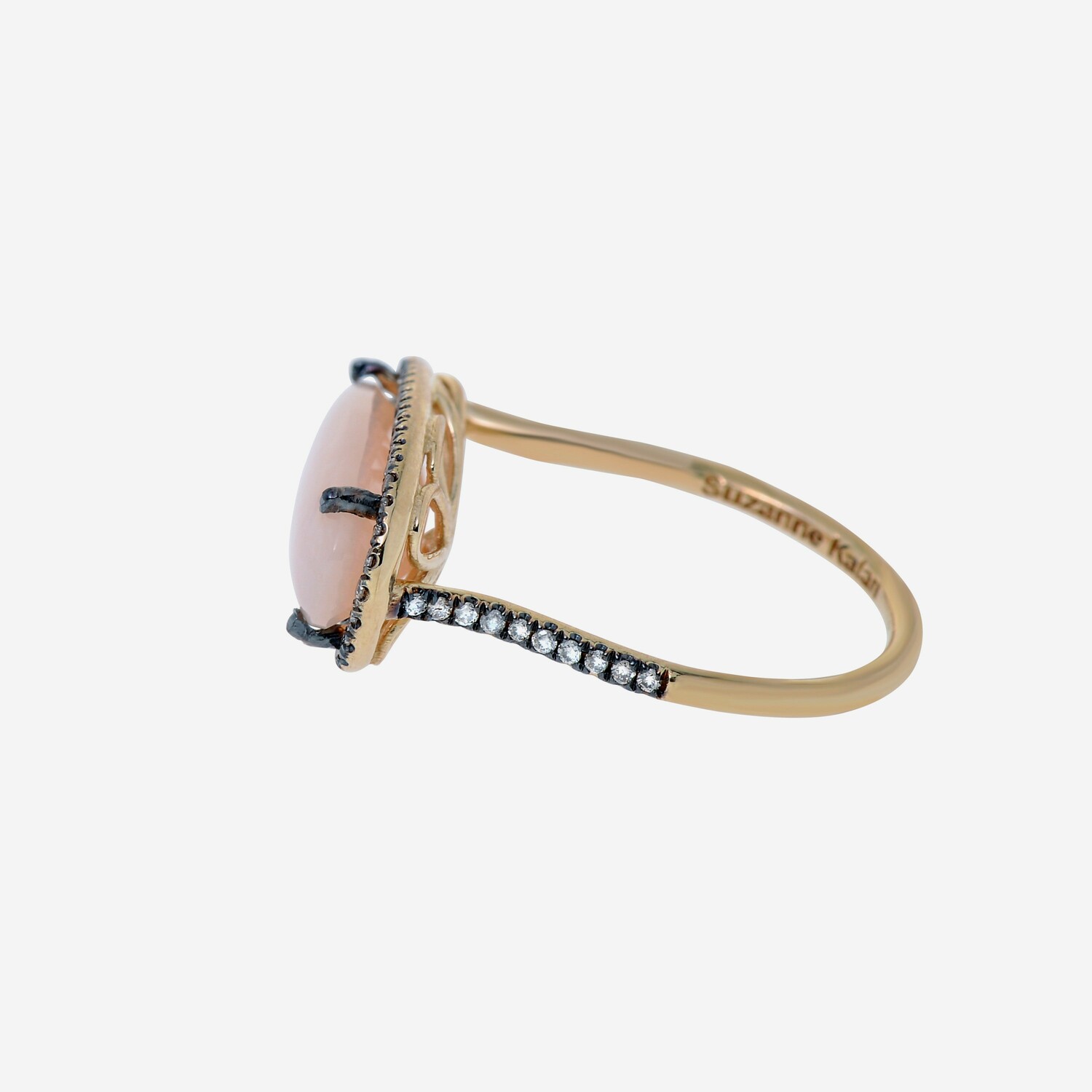 18K Yellow Gold Pink Opal + Diamond Ring // Ring Size: 6.5 // New
