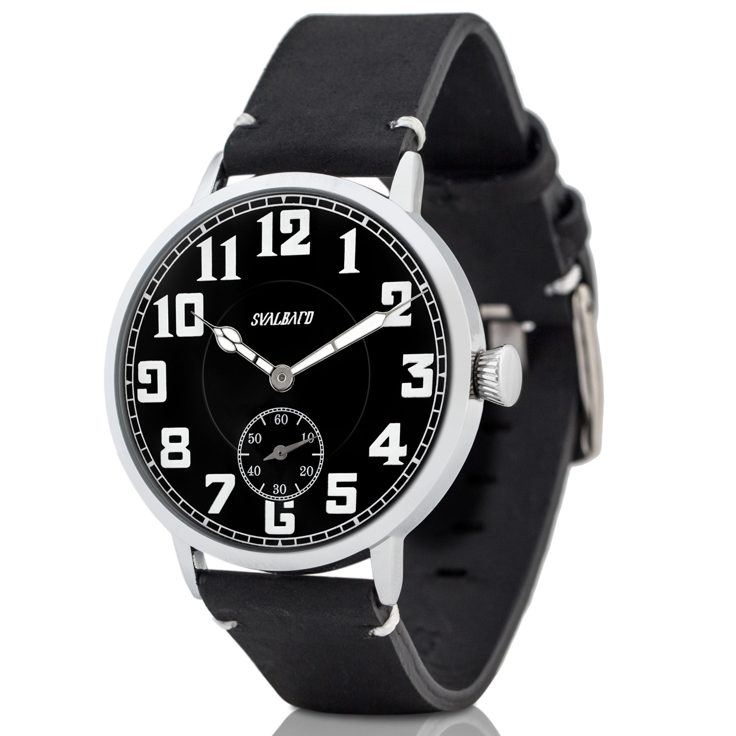 This classic wrist watch from Svalbard features a Japanese Seiko quartz movement and a mineral crystal.