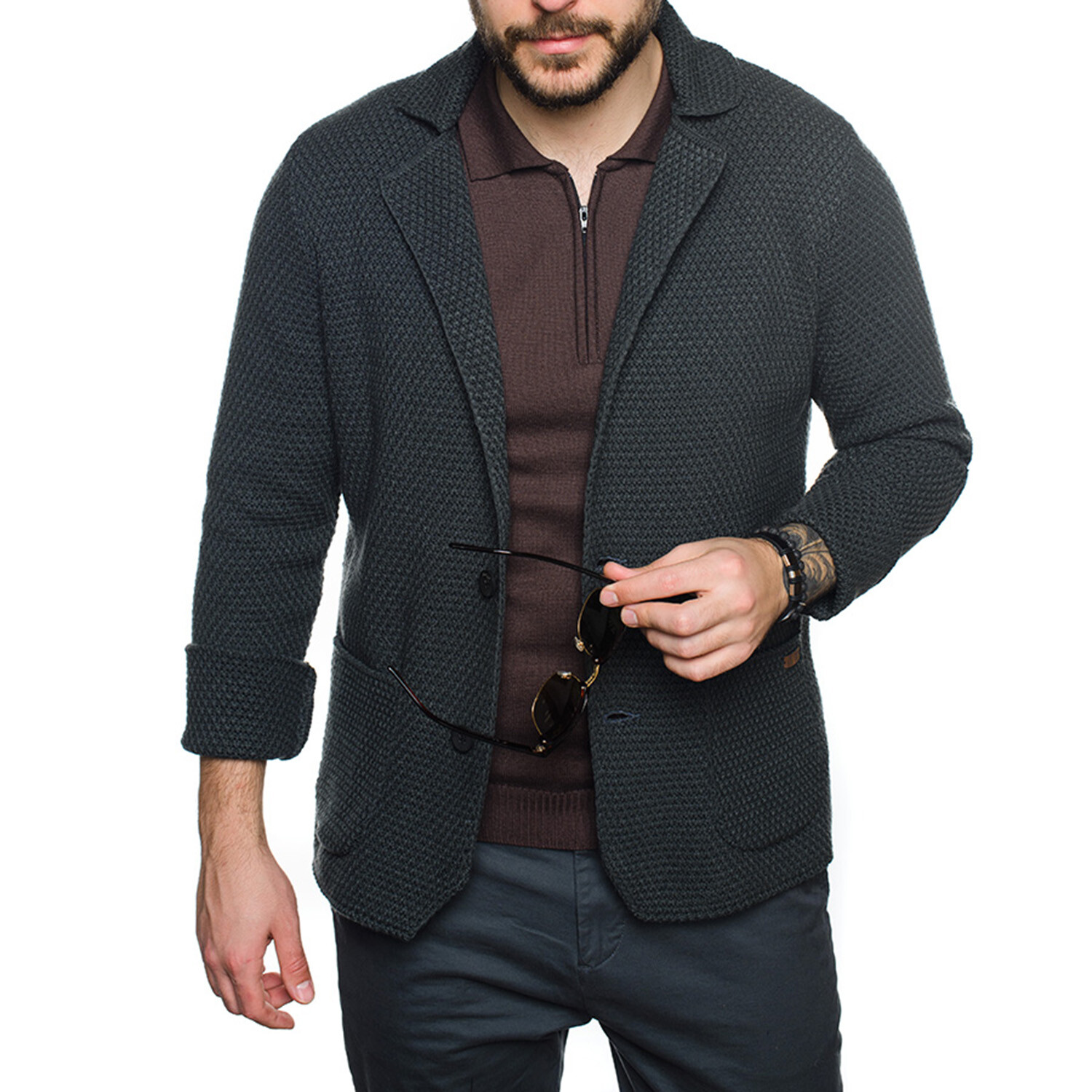 Double Breasted Knit Wool Cardigan // Dark Gray