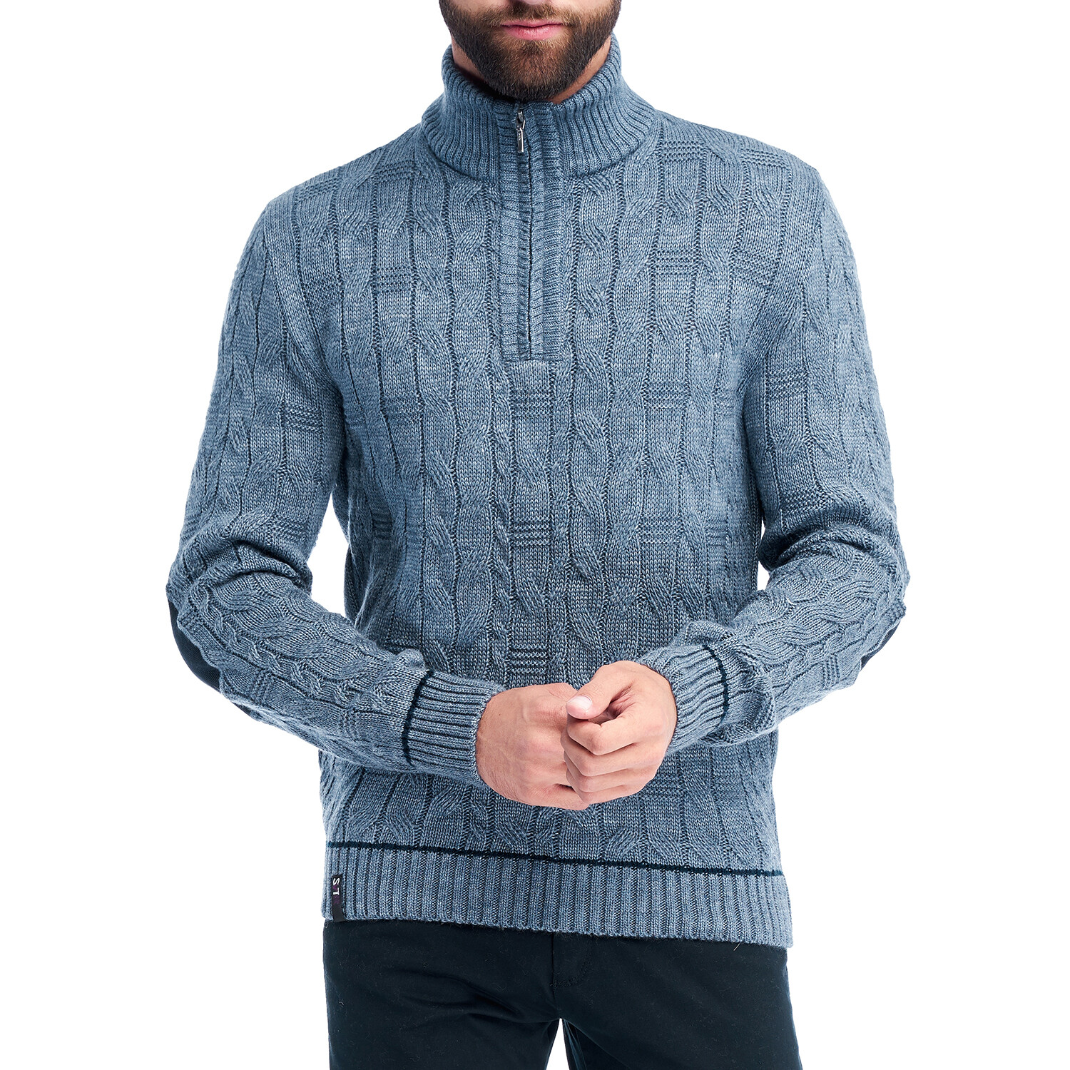 Quarte Zip Cable Knit Wool Sweater// Denim