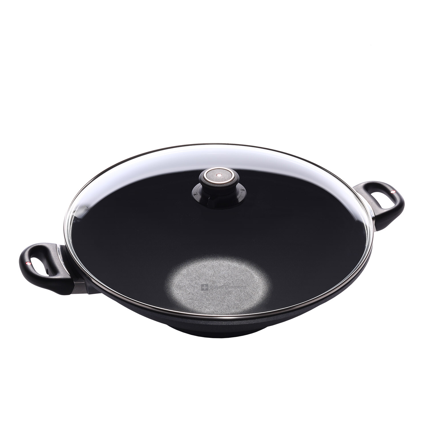 Cook for the whole family like a Chinese pro with the 14" HD Wok with Lid and Rack. Swiss Diamond has spent years working on their high quality wok design. At 14 inches in diameter, this 6.3 quart wok is made from heavy duty cast aluminum, eliminating the need for a wok ring, and coated with a patented diamond-reinforced coating.