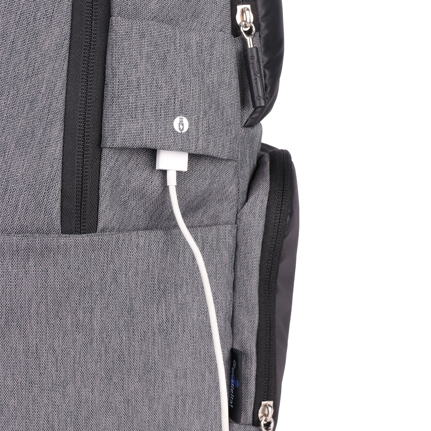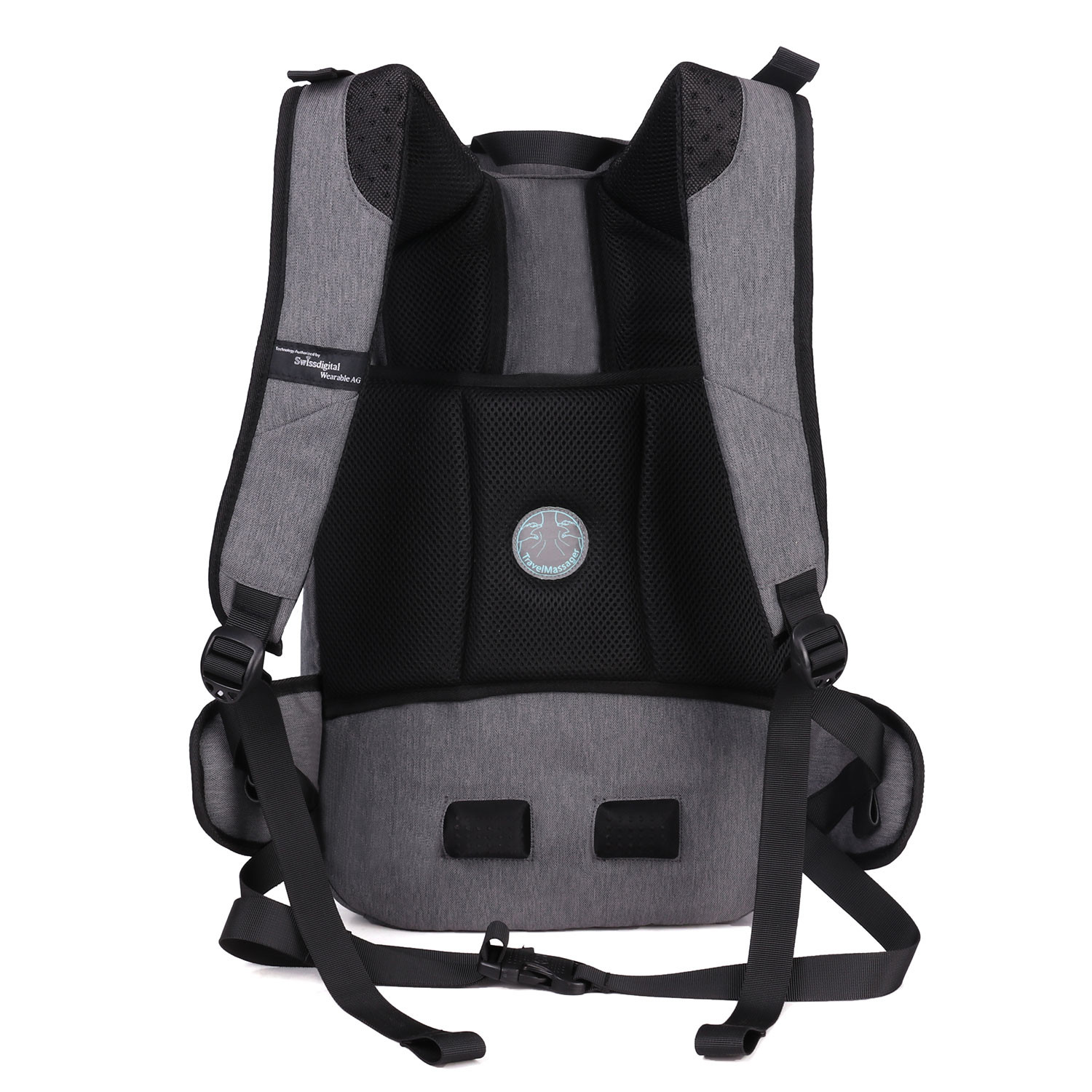 Stay comfortable and relaxed while on the go with the Empere TM. This high-tech backpack smartly combines a high air-flow back panel design and a back-vibrating massager to soothe any muscle aches. It also features a patented, pre-wired USB charging system to power your essential devices while on the move. Use the included Swissdigital 5000mHa battery will power both the massager and your USB-compatible devices.