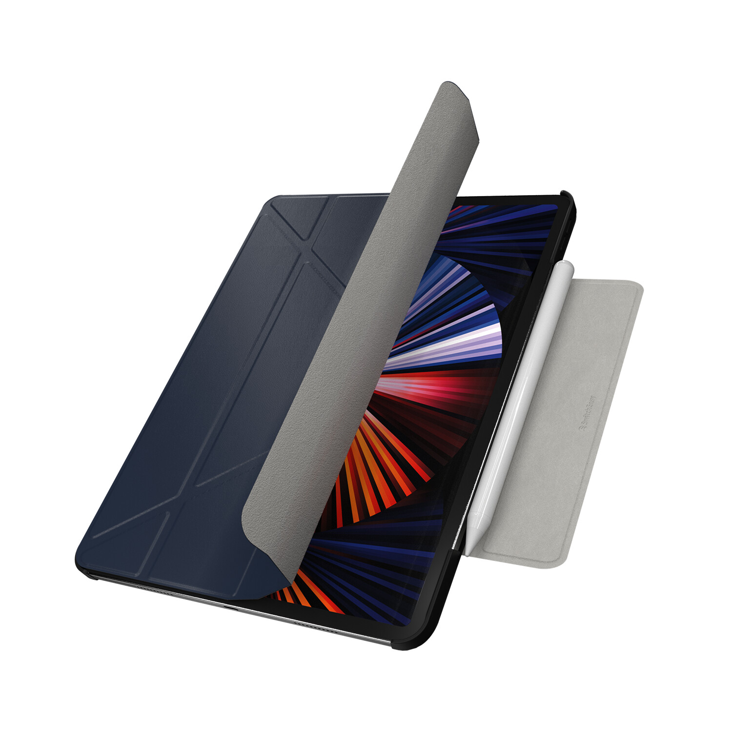 Origami is a flexible, multi-position folding folio for your iPad. The bi-directional flap bends forward and backward to provide 4 positions for typing, reading, and browsing—2 landscape modes, portrait mode, and typing mode. When you open up the Origami, your iPad will automatically turn on, then turn off again when it's closed to help save battery. An additional magnetic flap offers space to store your stylus so you can bring your Apple Pencil with you everywhere.