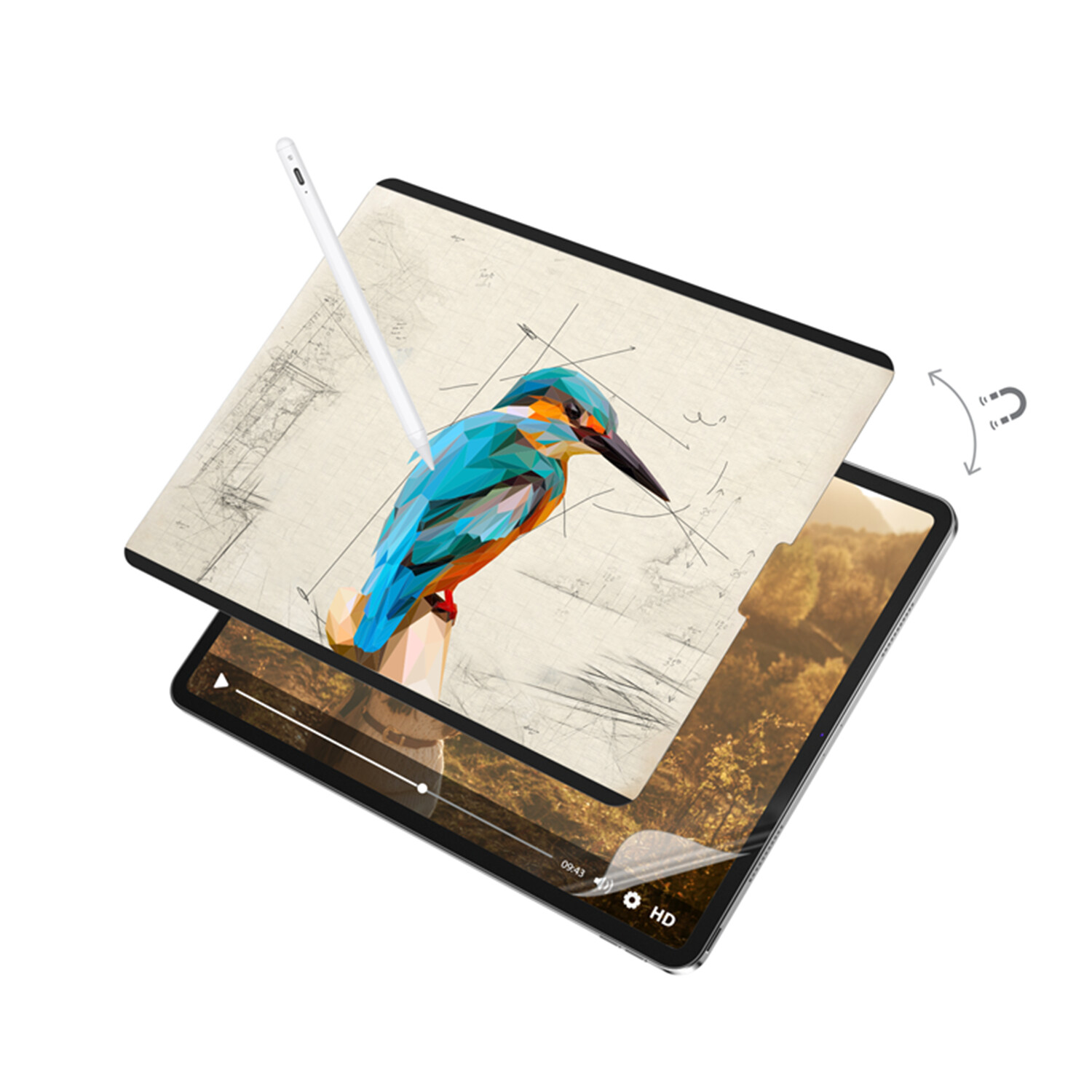 Have you been worried about clarity when using the paper-feel screen protector? Introducing SwitchPaper—the magnetic screen protector that lets you switch between drawing with a paper feel and viewing with HD clarity. This designed provides perfect control for every detail, just like drawing on paper. The fine matte texture is able to reduce the light reflection and prevent fingerprints. This bundle also includes an HD Film Protector, cleaning kit, and storage sleeve.