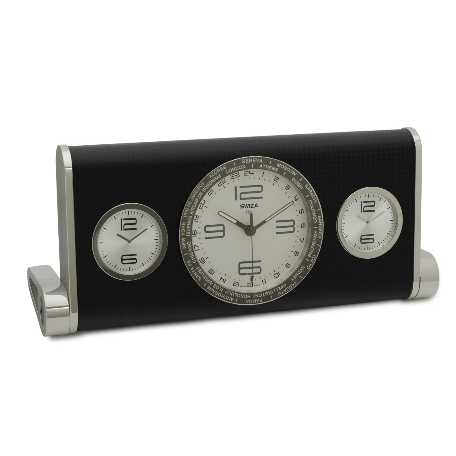 Dressed in carbon fibers, the Business Class quartz clock represents a very high Swiss Made quality. Combining luxury and multiple functions, it represents the best way of saying thanks to your dearest ones or "I'm busy" to your coworkers — with a gift every world traveler will appreciate. Paris, New York, London... you're always on time, thanks to the 3 time zone display!