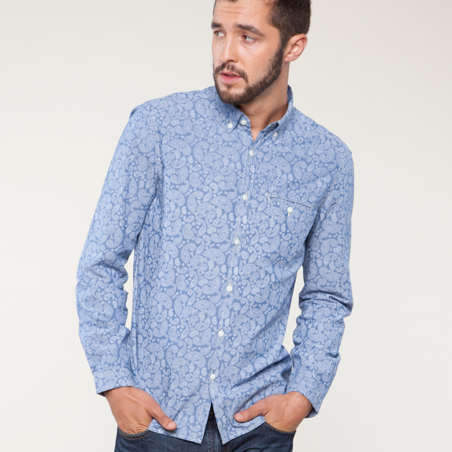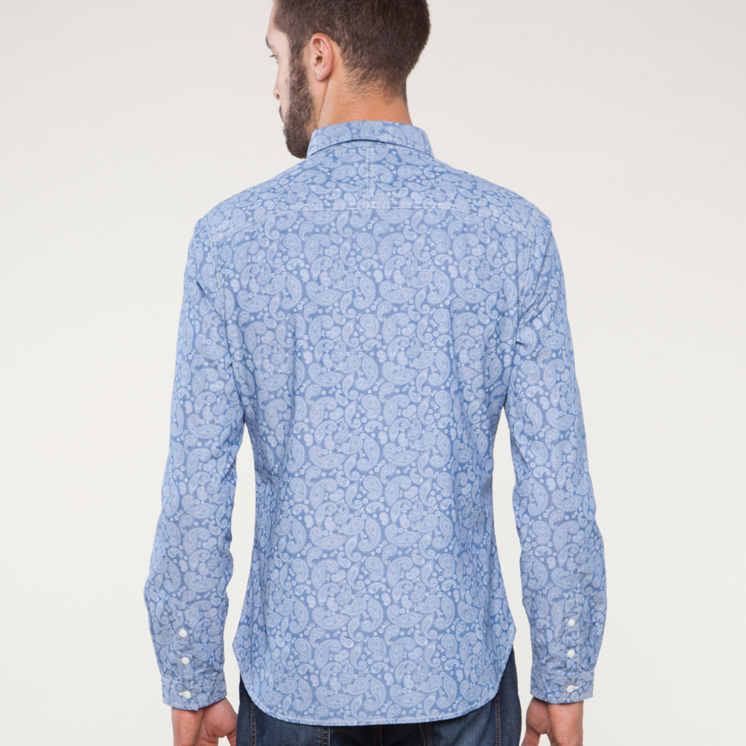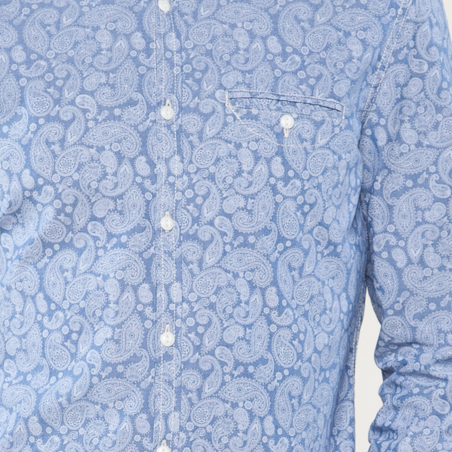 This long sleeved Common People Scadium Shirt has a classic cut, featuring a curved hem and a chest pocket. Wear it under your windbreaker and step out with style.