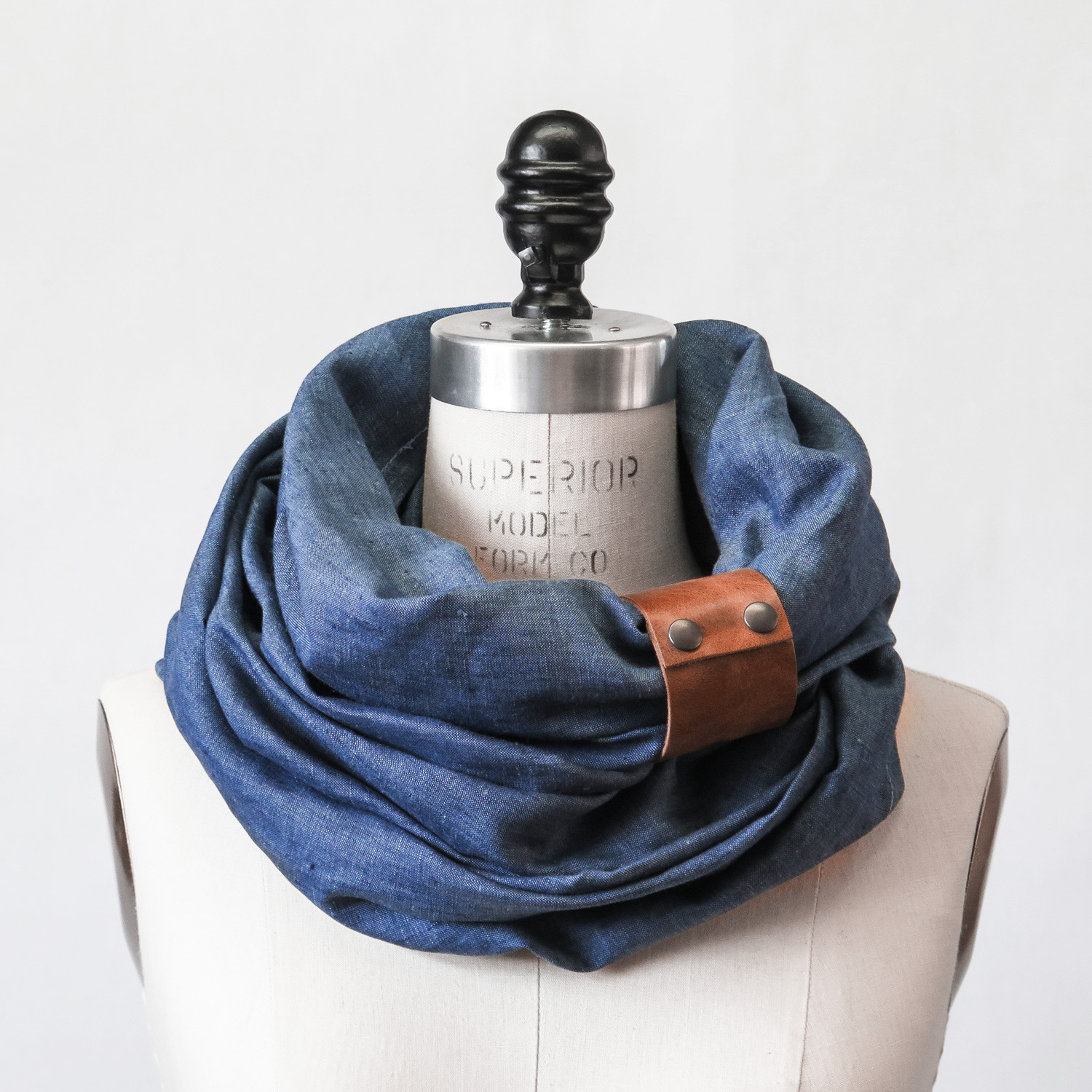 Made with a sumptuous blue denim linen and a removable leather cuff, this unisex piece is design to stay forever in your wardrobe. It's simple, chic and comfy, making it the perfect scarf for an express makeover any day. Linen is an easy, breezy fabric that wears well. Thanks to designer Amelie Bryson's attention to detail, it's perfectly styled and incredibly comfortable.