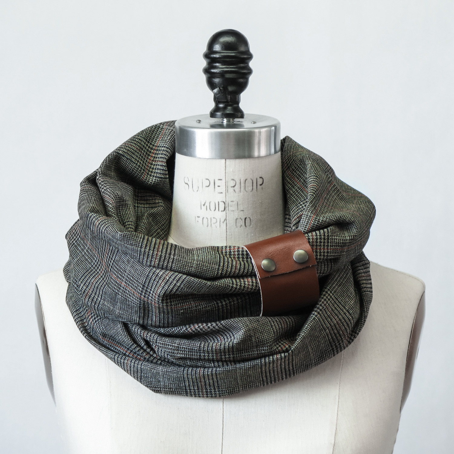 Made with a sumptuous charcoal plaid rayon and a removable leather cuff, this unisex piece is design to stay forever in your wardrobe. It's simple, chic and comfy, making it the perfect scarf for an express makeover any day. Rayon is probably the most misunderstood of all fibers, but you can appreciate it at its finest with designer Amelie Bryson's attention to material. Made from wood pulp, it is breathable, moisture absorbent, and incredibly comfortable.