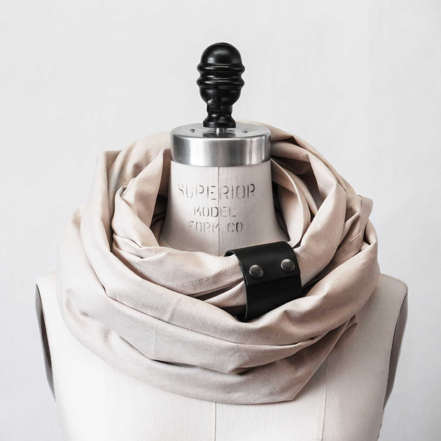 Made with a sumptuous cream linen and a removable leather cuff, this unisex piece is design to stay forever in your wardrobe. It's simple, chic and comfy, making it the perfect scarf for an express makeover any day. Linen is an easy, breezy fabric that wears well. Thanks to designer Amelie Bryson's attention to detail, it's perfectly styled and incredibly comfortable.