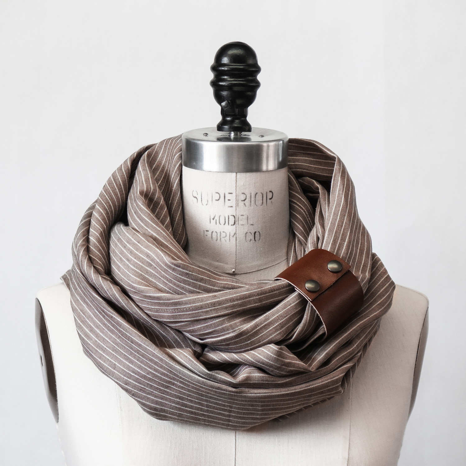 Made with a sumptuous sand stripe linen and a removable leather cuff, this unisex piece is design to stay forever in your wardrobe. It's simple, chic and comfy, making it the perfect scarf for an express makeover any day. Linen is an easy, breezy fabric that wears well. Thanks to designer Amelie Bryson's attention to detail, it's perfectly styled and incredibly comfortable.