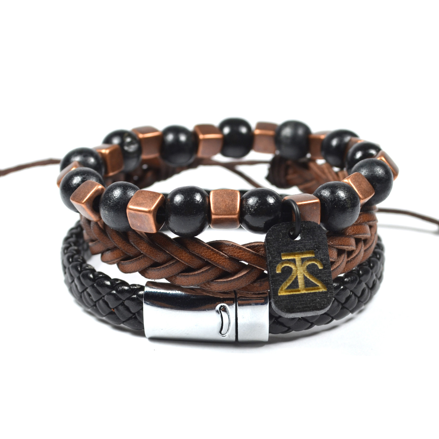 Leather And Wood in Black And Bronze // 3 Pack