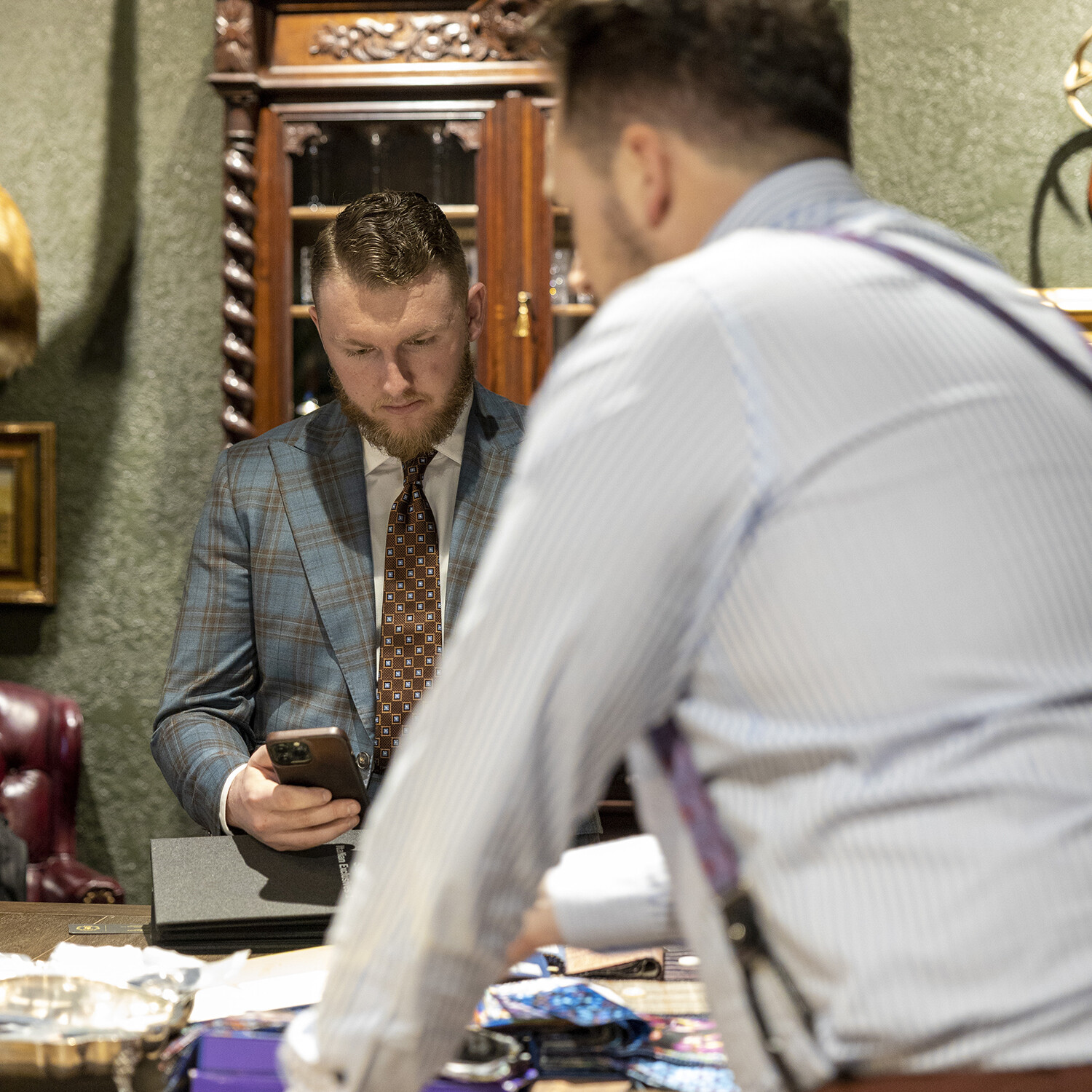 Prepare an indulgent experience locally as the proprietors of Tailored Society "bring the studio" to you for an unforgettable fitting. They'll take care of the details and join you at a nearby premium hotel for your fitting.