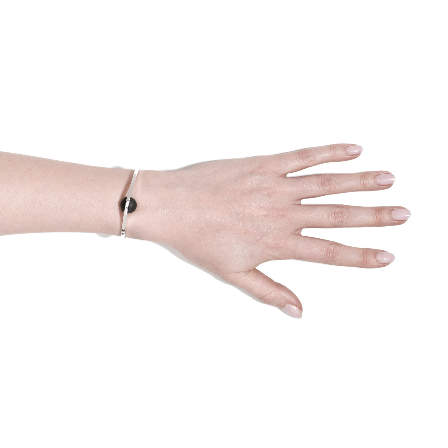 Cosmos calling! The new Red Dwarf jewelry collection is inspired by the cosmic elements and shapes of the stars. Organic forms and sharp, geometrical lines echo the shapes of the comets and stars in this minimalistic bracelet crafted with onyx.