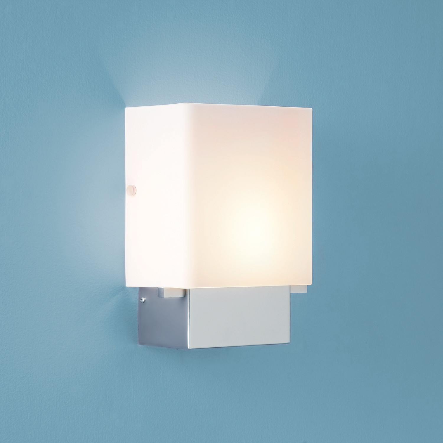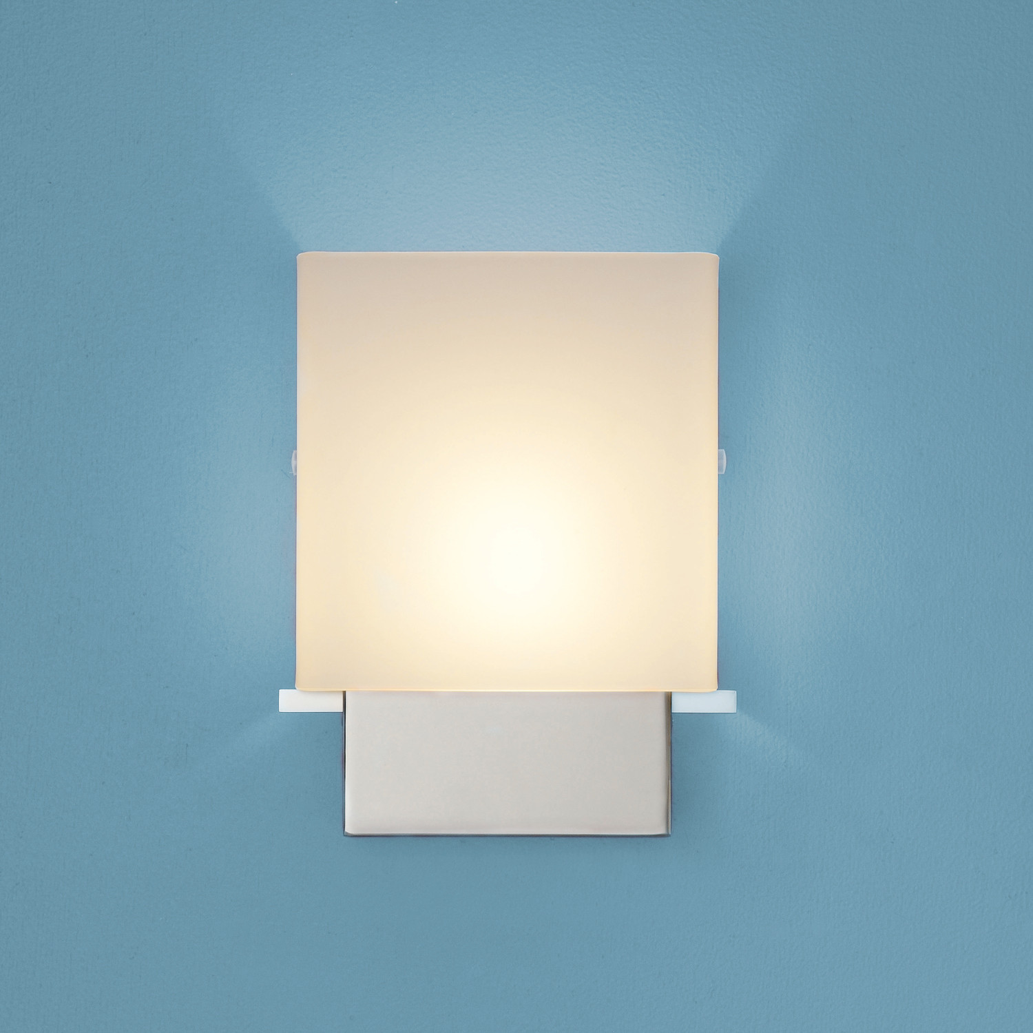 Zina is an elegant sconce for modern spaces. Its clean, rectangular design is classic and balanced just like its frosted glass and matte metallic palette.