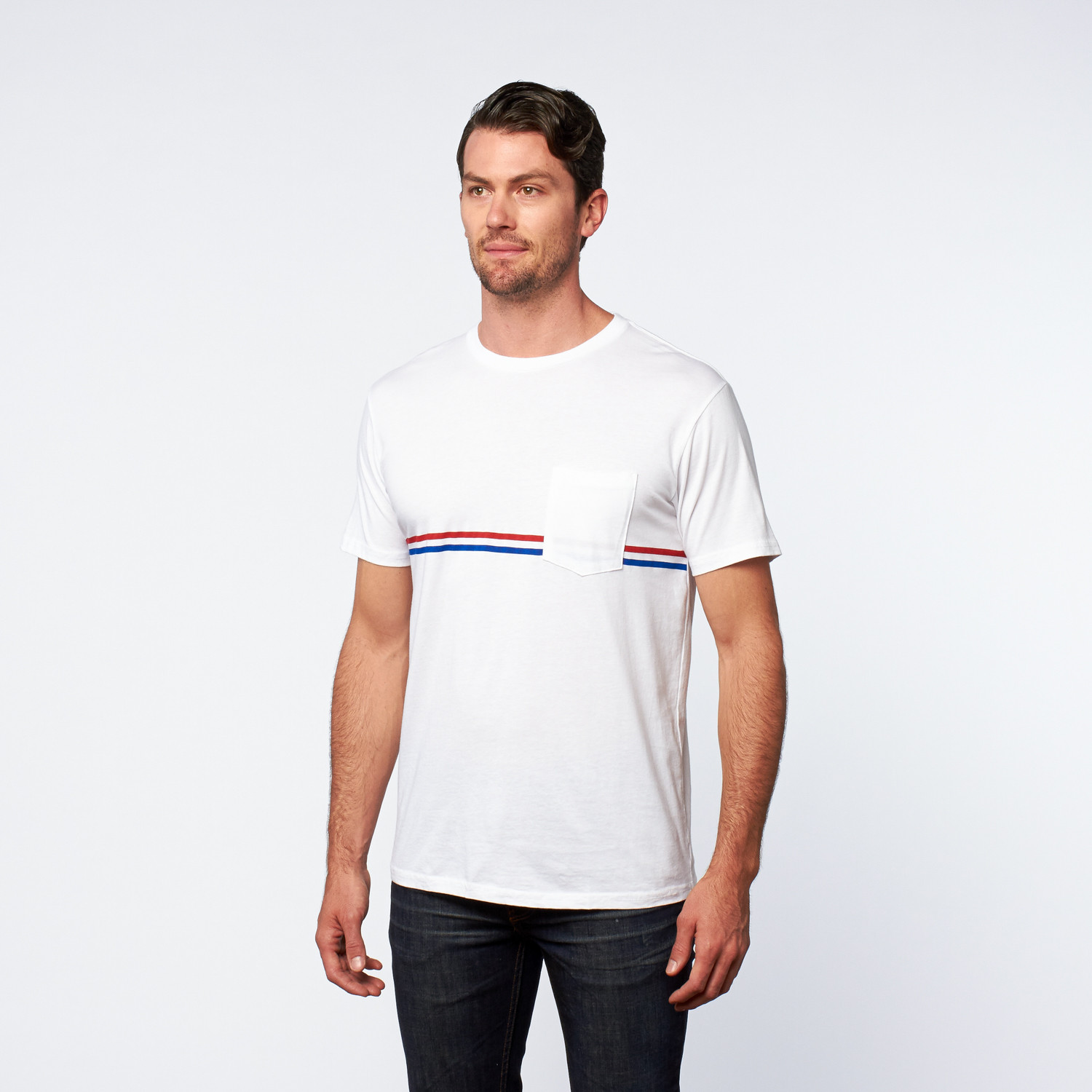 A basic taken to the next level, the Mod Stripe Tee stands apart from most crewnecks out there. A sporty blue and red stripe dissecting the torso makes a statement.
