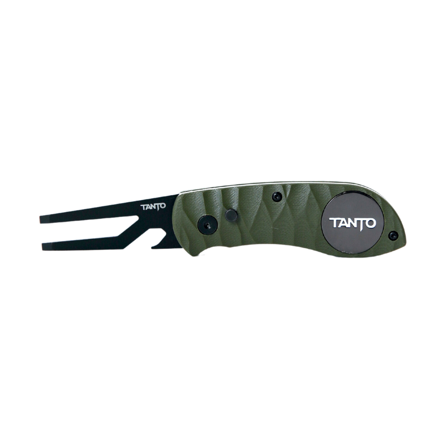 The RP2 is designed for the gentleman golfer who won't settle for a cheap, run-of-the-mill divot tool. Each grip on this Tanto is individually CNC milled from G10 composite that is incredibly strong and durable. The carefully selected high-tension springs on the switchblade are designed to seamlessly function every single time. Its custom stainless steel belt clip is a handy solution for golfers who don't like things in their pockets. The RP2 also features a built-in bottle opener for use on the course, and the 19th hole.