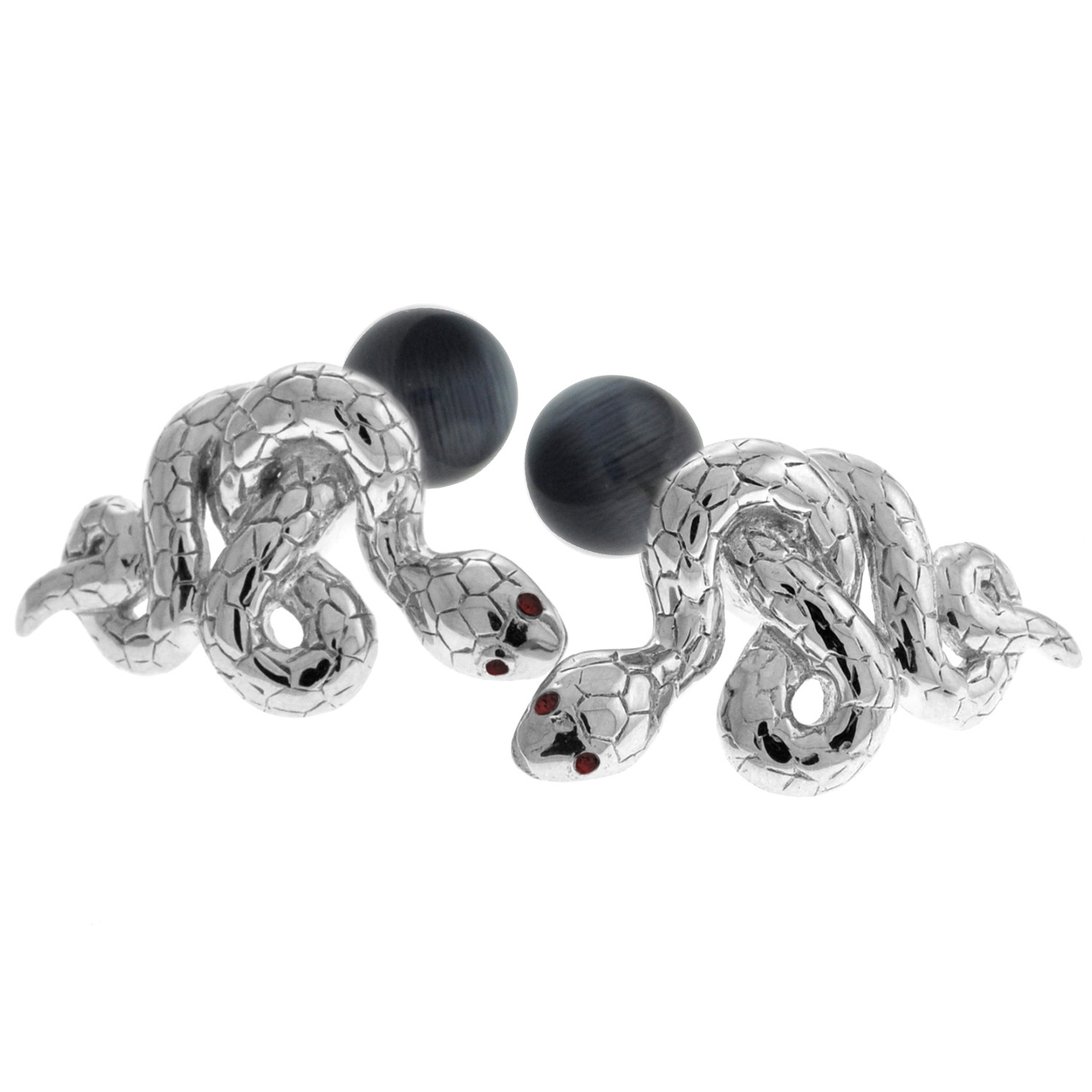 The Snake animal cufflinks are made with Swarovski Elements and finished with matching color fibre optic glass ball fittings. A rhodium plated finish completes this pair of spirit animal accessories.