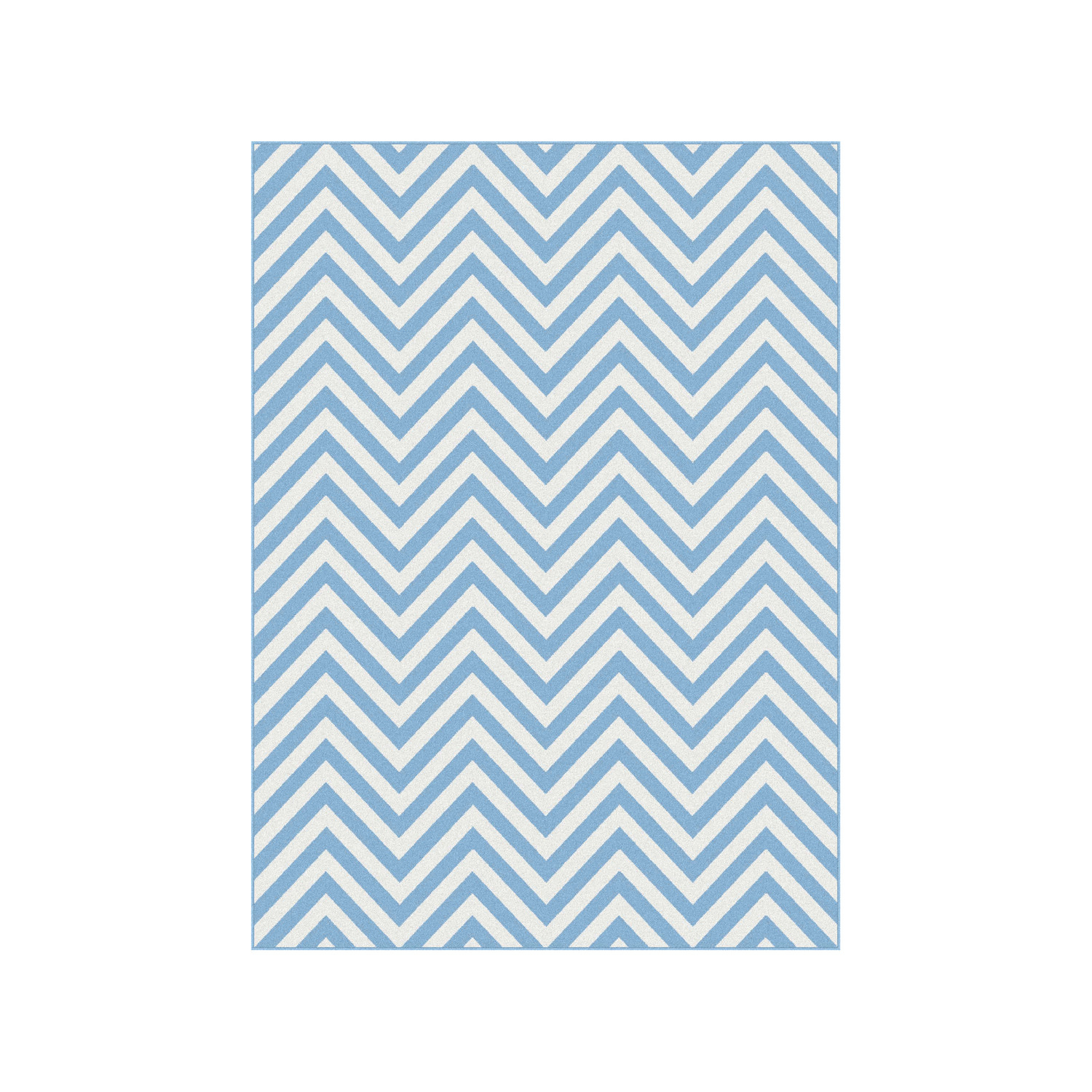 The classic chevron pattern gets a modern update in calipso blue and white. This design is sure to bring life to any room, whether you add a dash of pattern with a hall runner or go bold with a large area rug. The clean lines and crisp color of these rugs are executed in 0.39-inch pile for a plush hand made of high density polypropylene fibers for long wear.