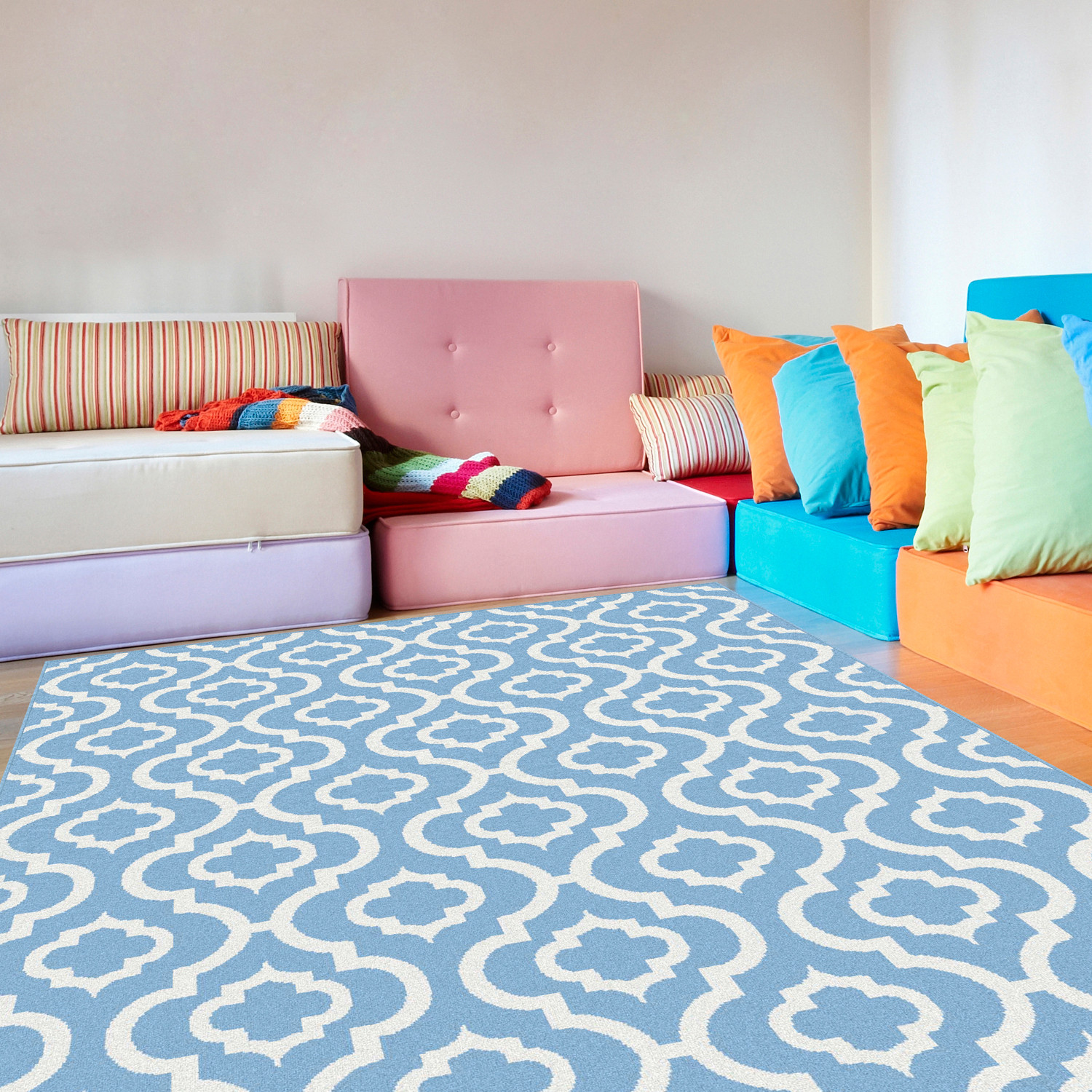 This modern take on Moroccan tiles brings life to any room, whether you add a dash of pattern with a hall runner or go bold with a large area rug. The clean lines and crisp color of these rugs are executed in 0.39-inch pile for a plush hand made of high density polypropylene fibers for long wear.