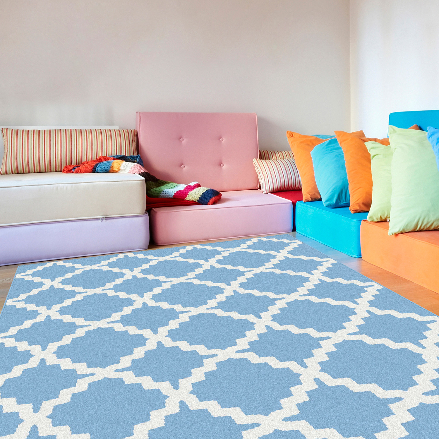 The classic lattice pattern gets a modern update in blue with textural white lines. This design is sure to bring life to any room, whether you add a dash of pattern with a hall runner or go bold with a large area rug. The clean lines and crisp color of these rugs are executed in 0.39-inch pile for a plush hand made of high density polypropylene fibers for long wear.