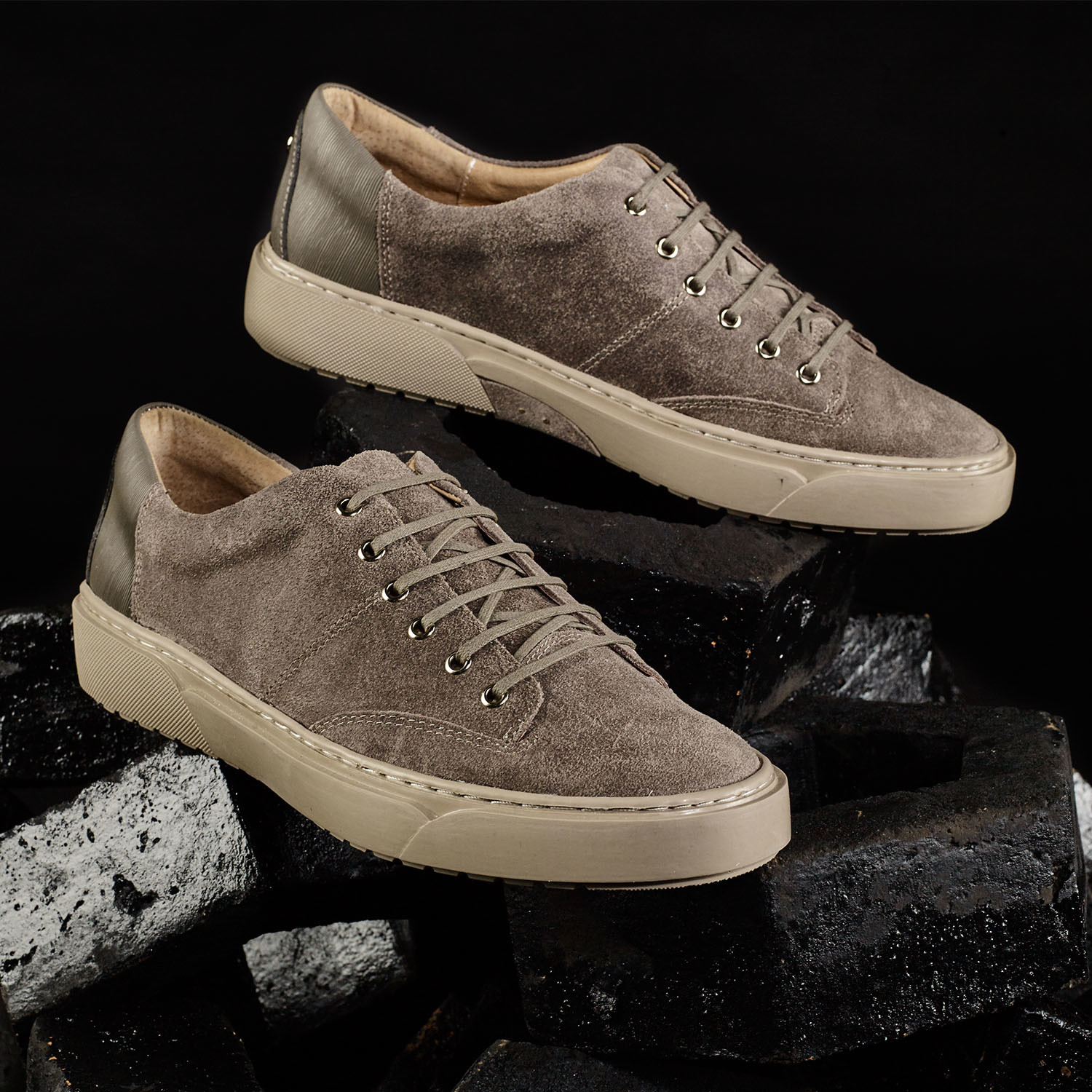 The Cooper pairs premium suede with a textural embossed leather heel in a tonal color palette to create a refined monochromatic upper. The toecap uses a construction method commonly found in work boots, but used on this trainer for added durability.