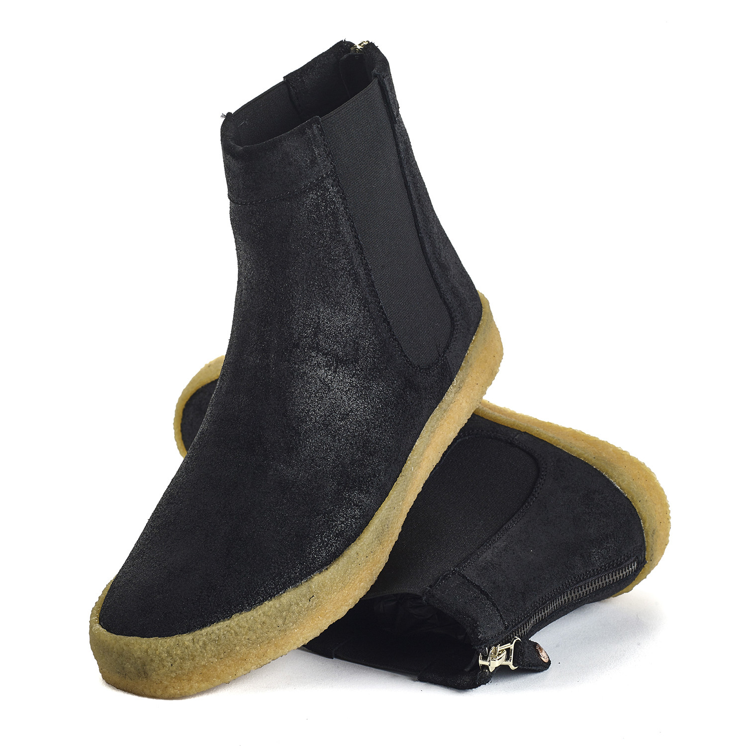 The Sinclair is a take on a trainer version of the classic Chelsea boot with a crepe rubber outsole. The upper is crafted with a premium nubuck leather with a waxy finish to create a monochromatic coloring with depth to keep this high-top boot trainer simple yet sophisticated.
