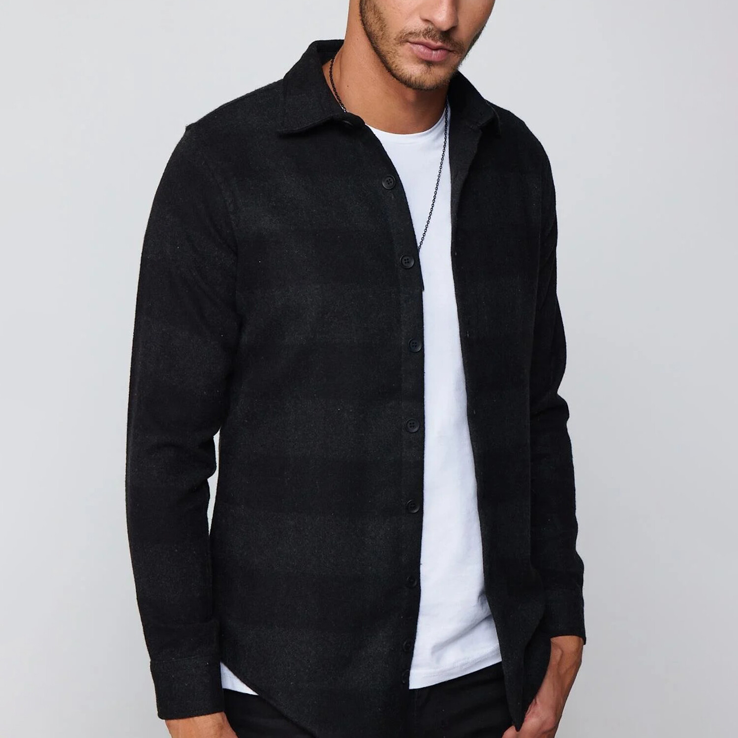 Slim Fit Winter Big Checkered Lumberjack Shirt // Black