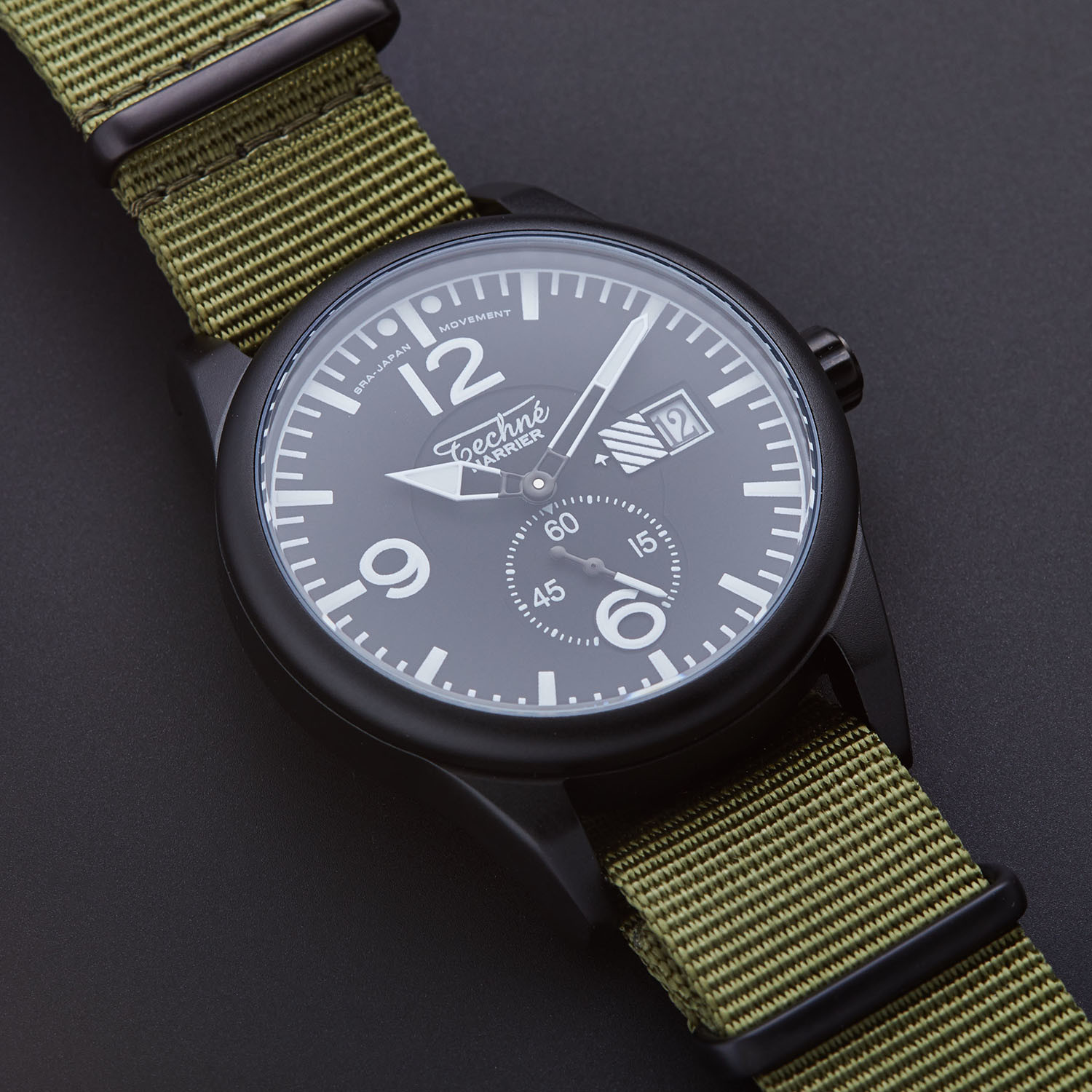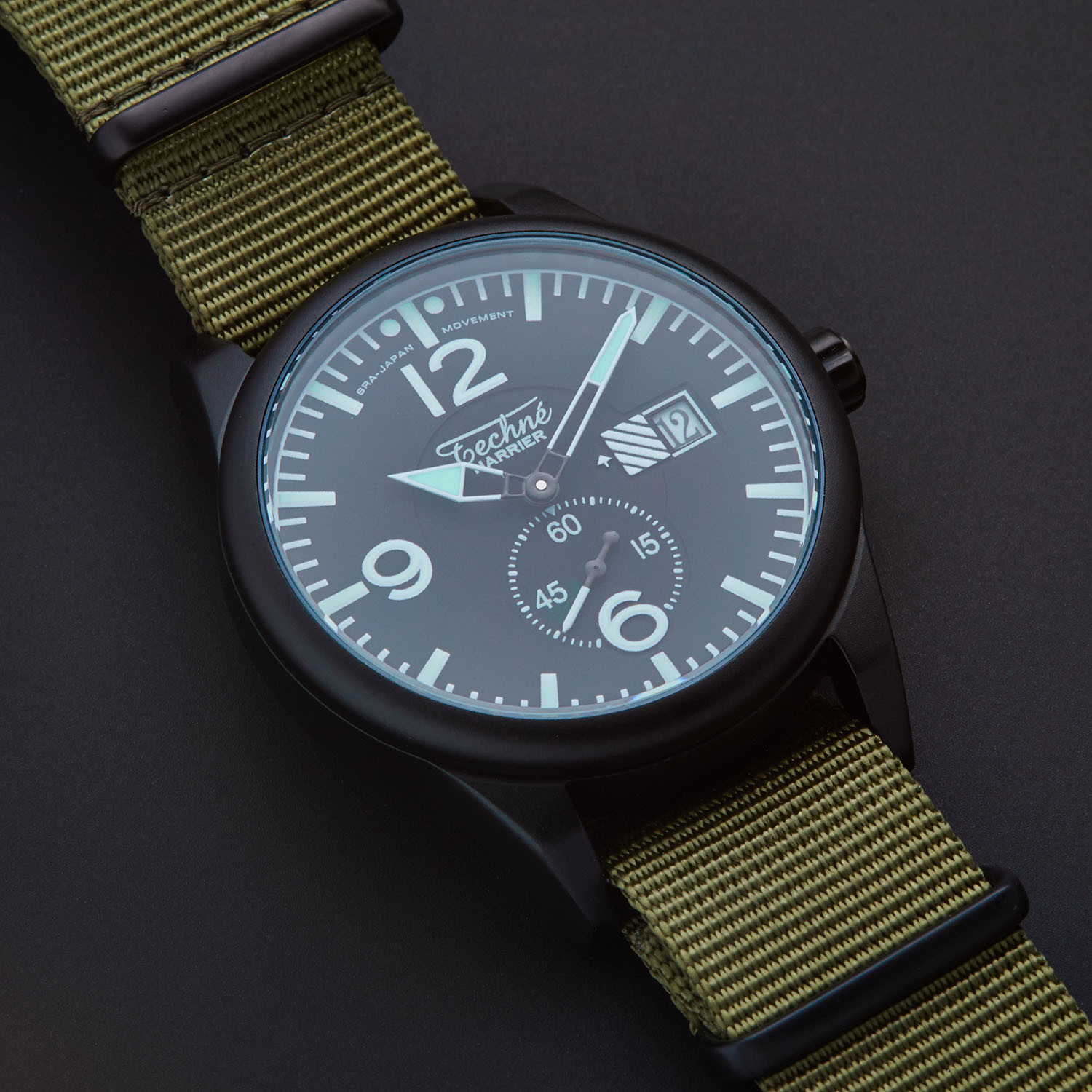 Named after the first fighter jet with vertical take off and landing, the Harrier watch is a contemporary adaptation of French cockpit clocks from the 1950’s. The Harrier fighter was extremely useful on the deck of naval carriers and it provided great operational and tactical flexibility on the field. Much like its namesake, this timepiece is a versatile enough for everyday, with sophistication to match any outfit.